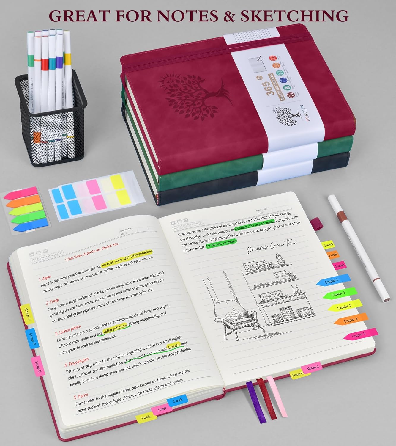 - 【365 Pages Premium Thick Paper】: Our PERCUN lined journal notebook is made of 365 pages high-quality 100Gsm thick ruled pager with an acid-free light Ivory paper that is thicker than normal. This premium quality paper will not cause bleeding, ghosting or smudging and is suitable for most types of pens,provides ample space for journaling, note-taking, and creative writing. The line spacing is 7mm, making it easy to write legibly and neatly.
