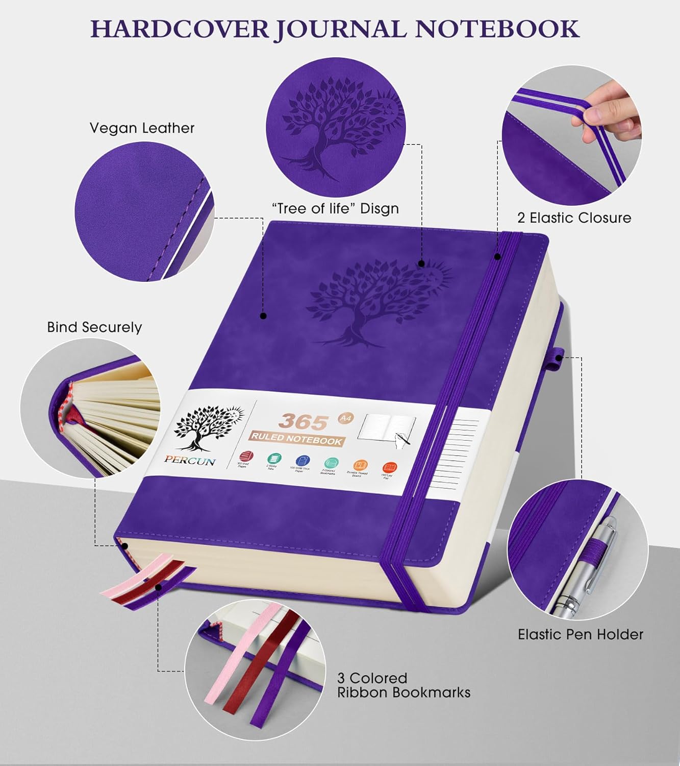 - 【365 Pages Premium Thick Lined Paper】: Our PERCUN lined journal notebook is made of 365 pages high-quality 100Gsm thick ruled pager with an acid-free light Ivory paper that is thicker than normal. This premium quality paper will not cause bleeding, ghosting or smudging and is suitable for most types of pens,provides ample space for journaling, note-taking, and creative writing. The line spacing is 7mm, making it easy to write legibly and neatly.