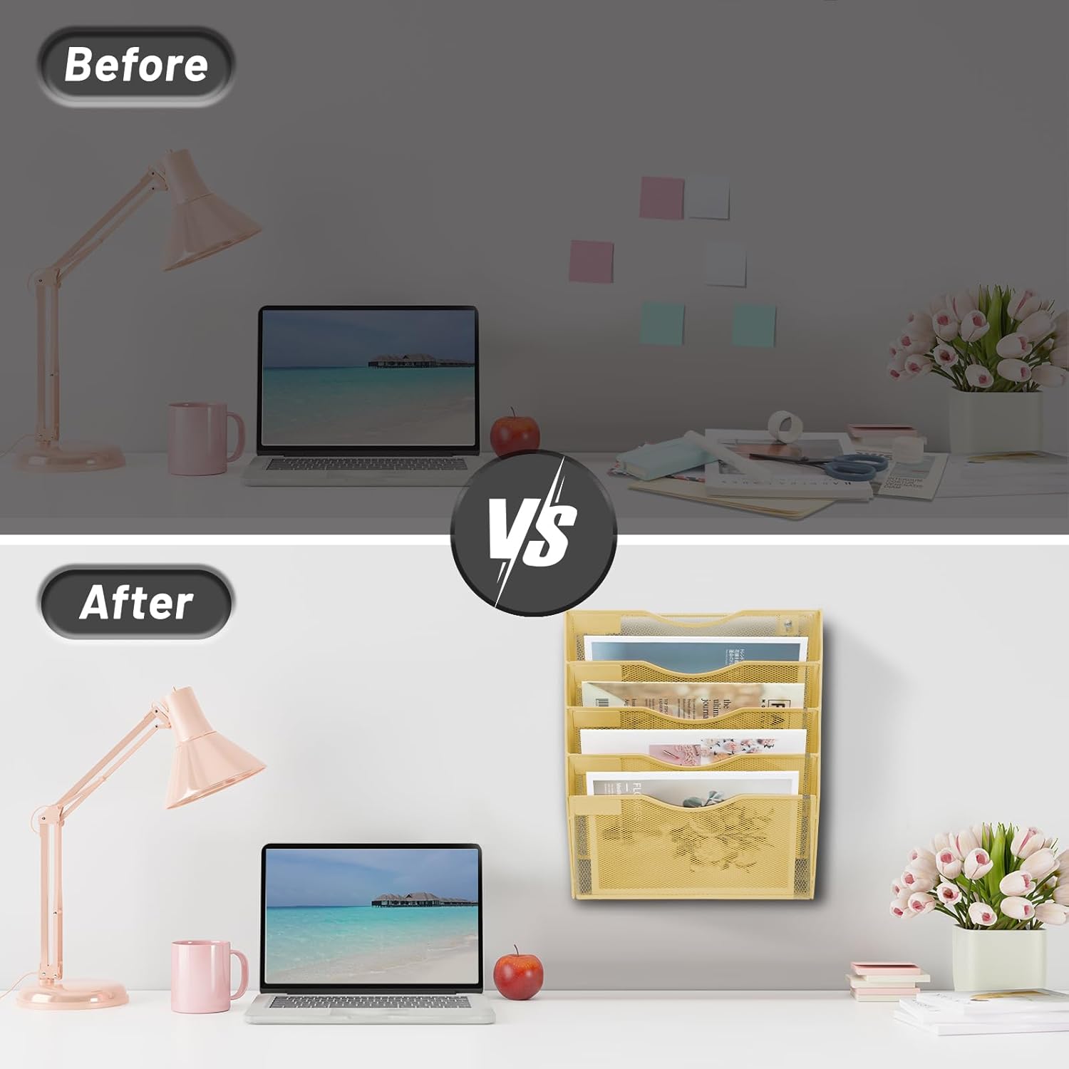 - Stylish Design - Gold wall organizer adds a touch of elegance to your workspace, making it the perfect file organizer for women. It not only keeps your office tidy but also adds a pop of color to your surroundings