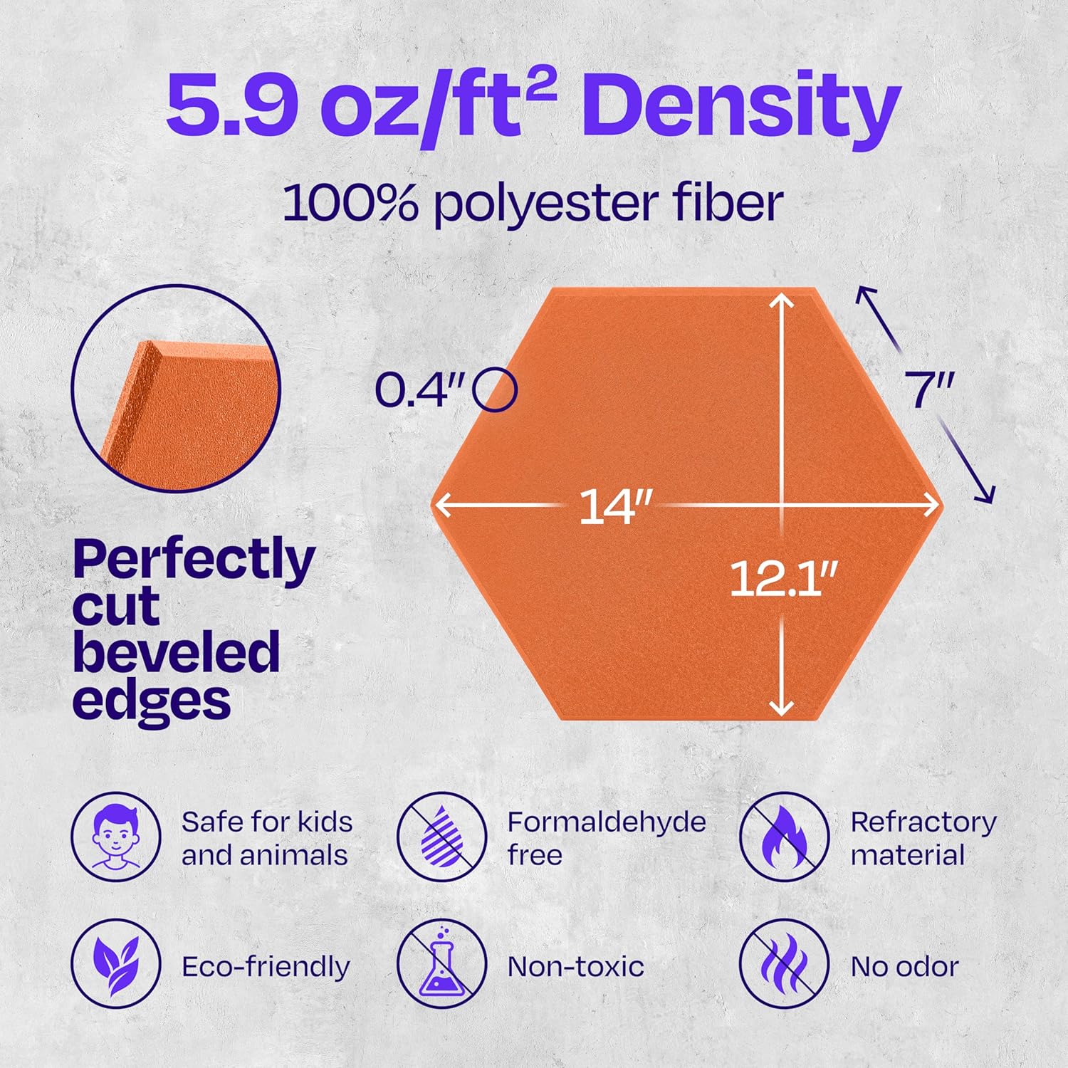 Acoustic Panels 12-Pack Soundproof Wall Panels 14"X12.1"X0.4" Sound Panels High Density Sound Dampening Panels - [Poppy Orange Hexagon]