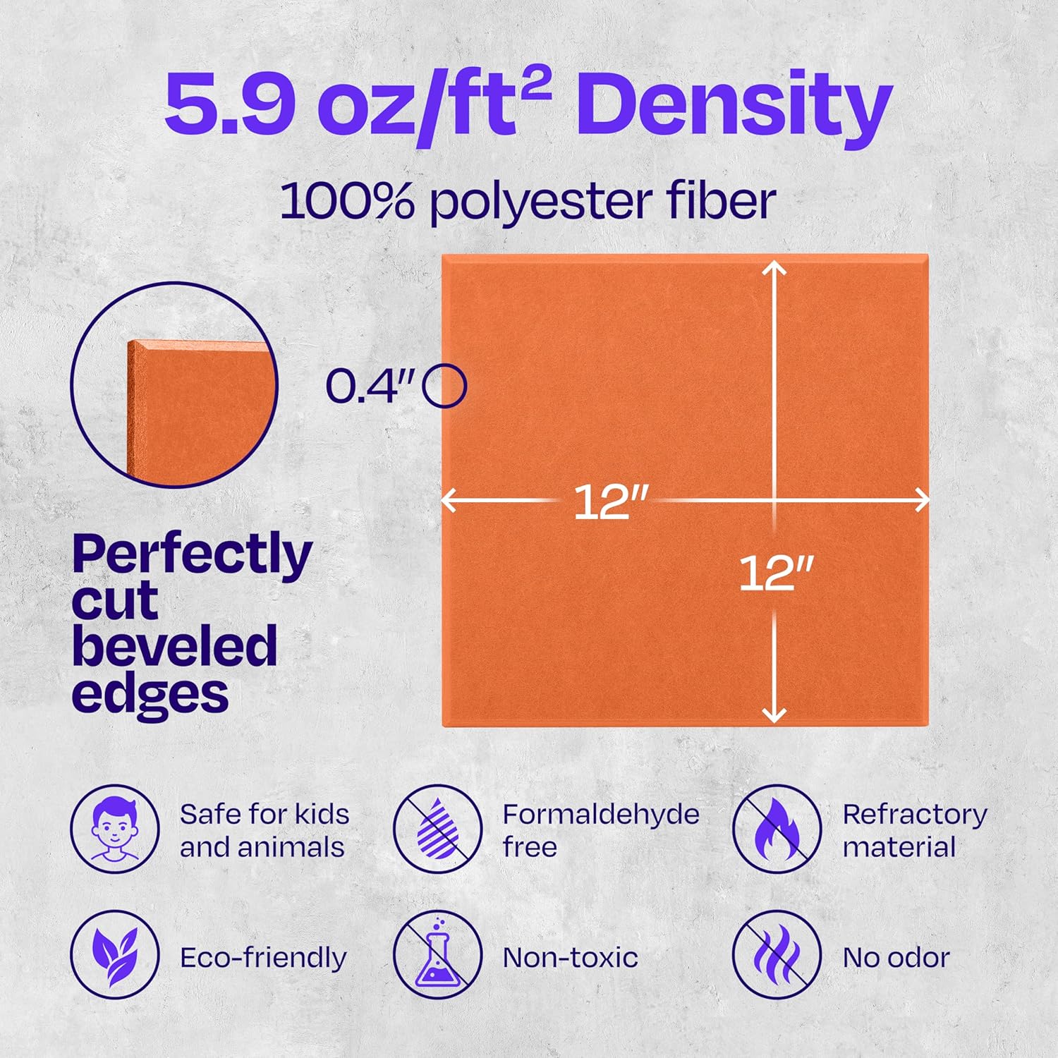 Acoustic Panels 12-Pack Soundproof Wall Panels 12"X12"X0.4" Sound Panels High Density Sound Dampening Panels - [Poppy Orange Square]