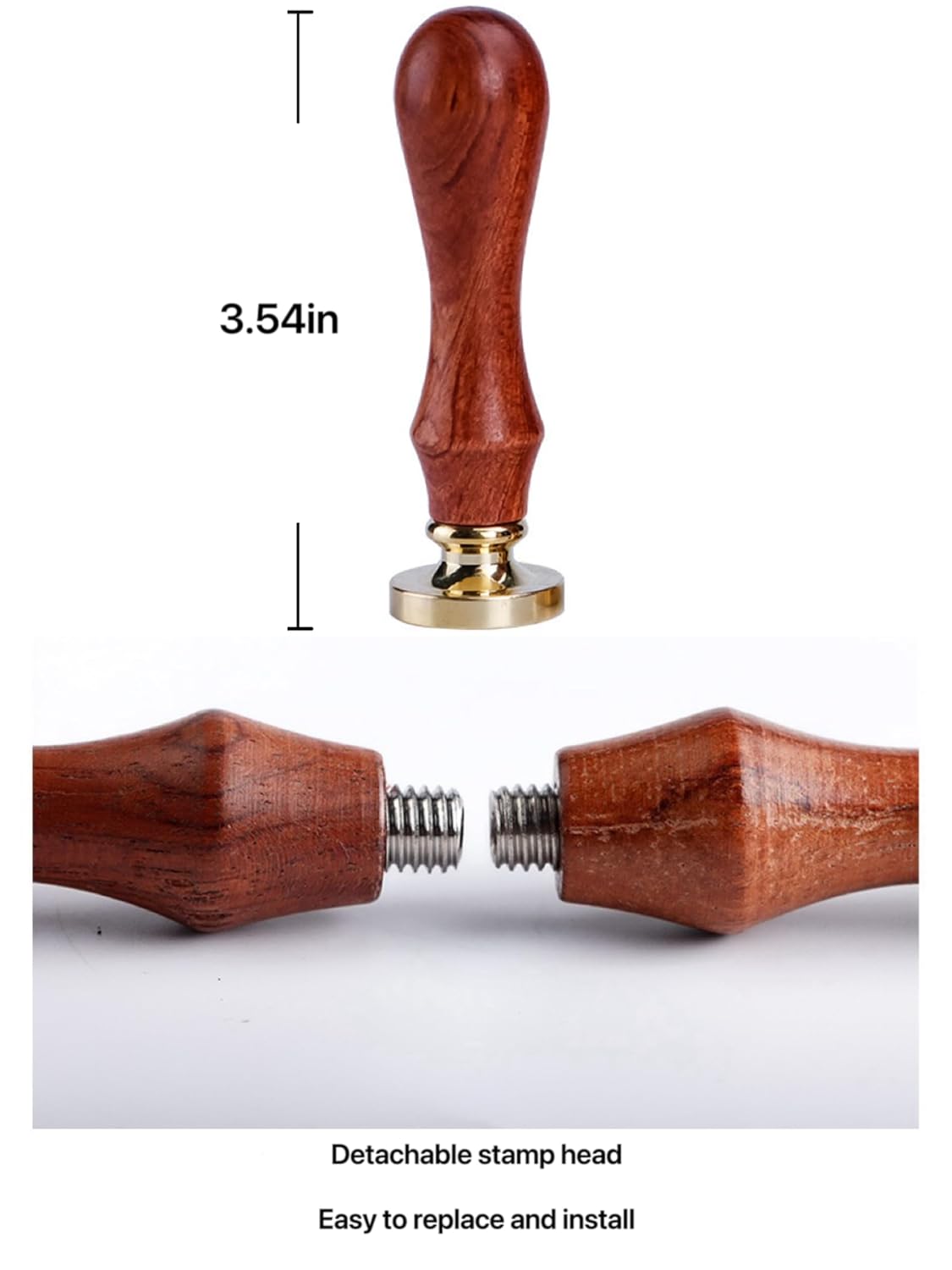 - 【WAX SEAL STAMP MATERIAL】 Made of wooden handle and high quality gold plated brass, easy to use and clear, the stamp head is smooth and shiny, non-stick.Removable brass seal head, Removable stamp head. Easy to change and install( Wooden handle will protect your finger from burning hurt).