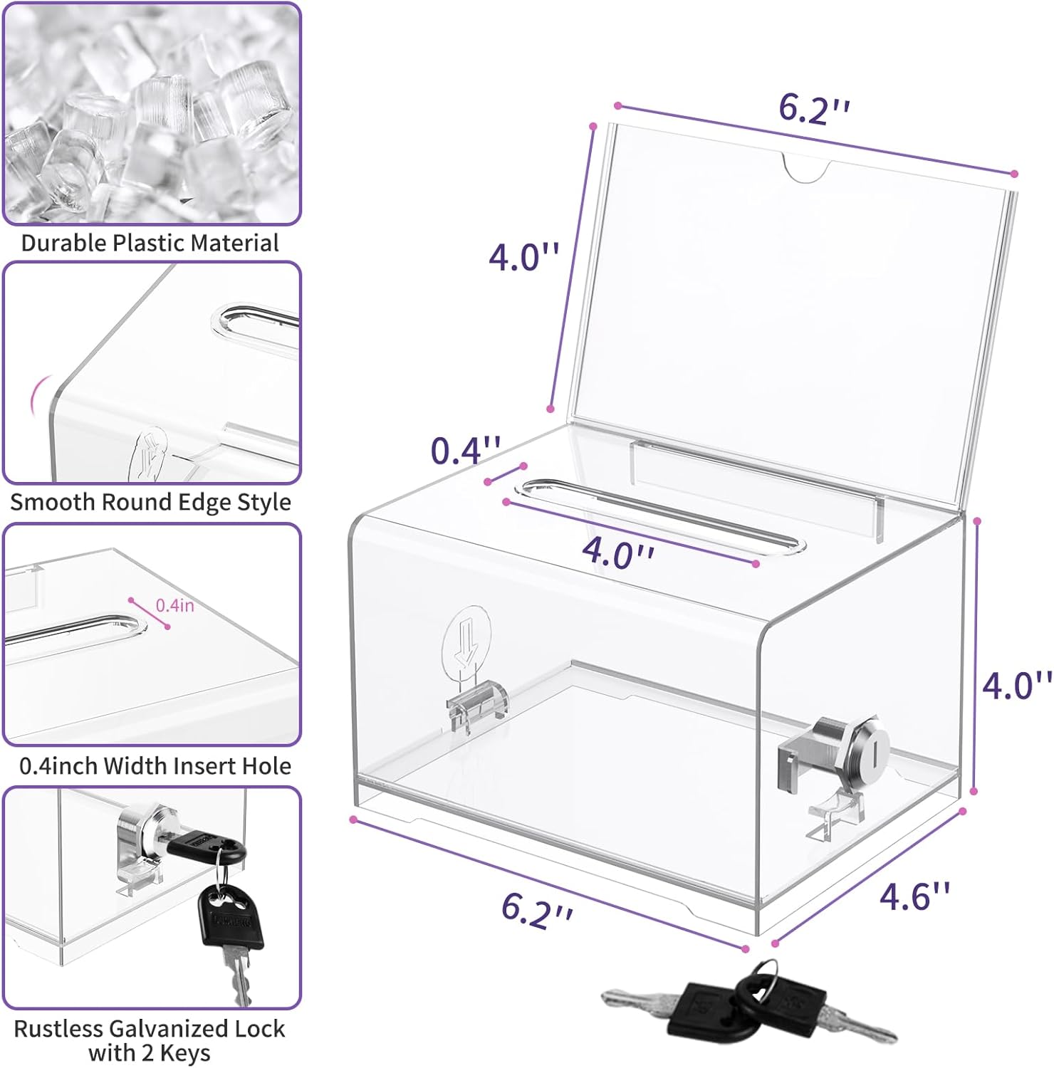 Donation Box with Lock, Clear Ballot Box with Sign Holder, Suggestion Box, Donation Boxes for Fundraising, Tip Jar, Raffle Box, Lock Box for Cards, Votes, Tickets, Prayer, Money, Cash