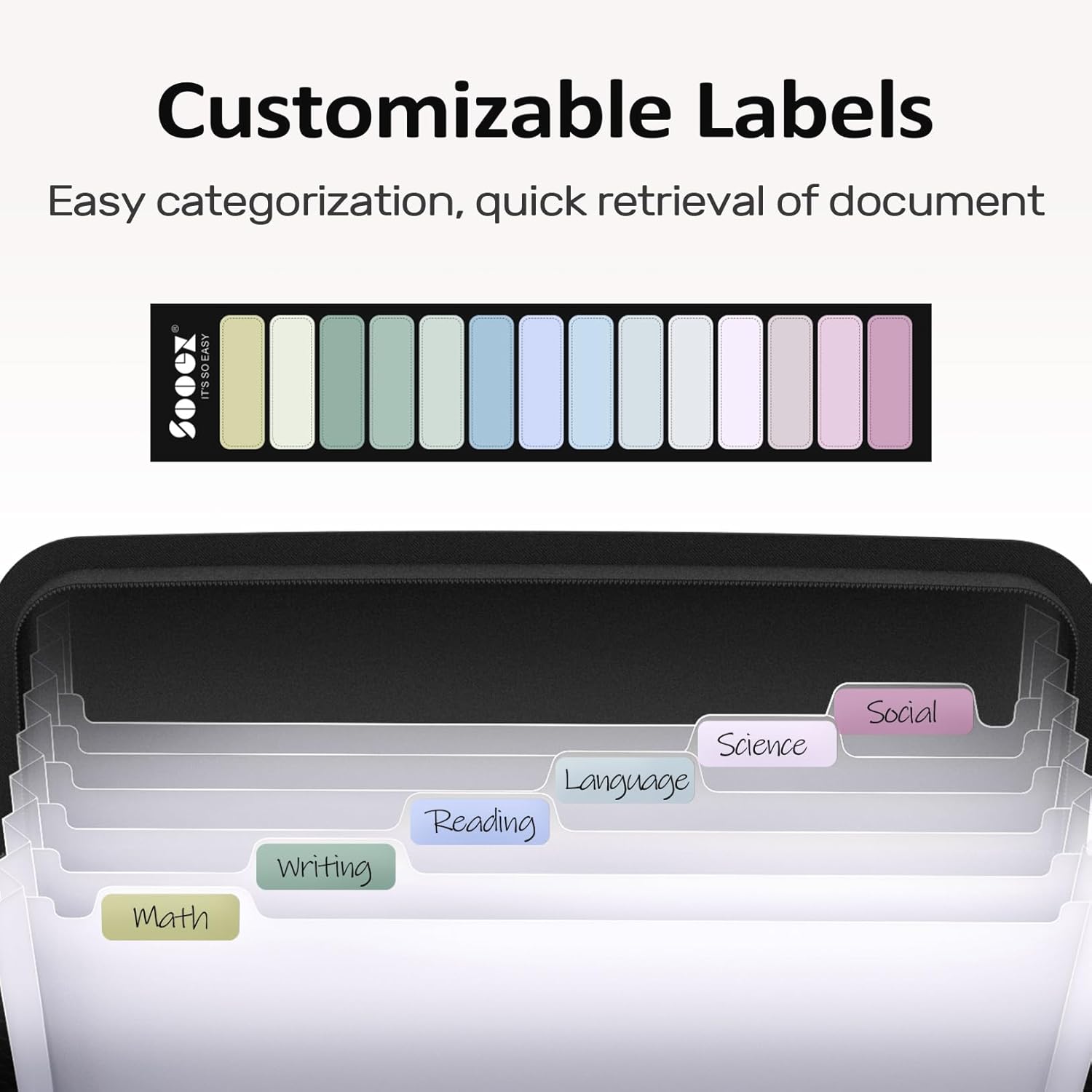 - Organized Easily & Quick Retrieval: The accordion file organizer and bonus pastels labels make it easier to sort and organize by subject or task. The 7 pockets and labels are helpful for at-a-glance organization.
