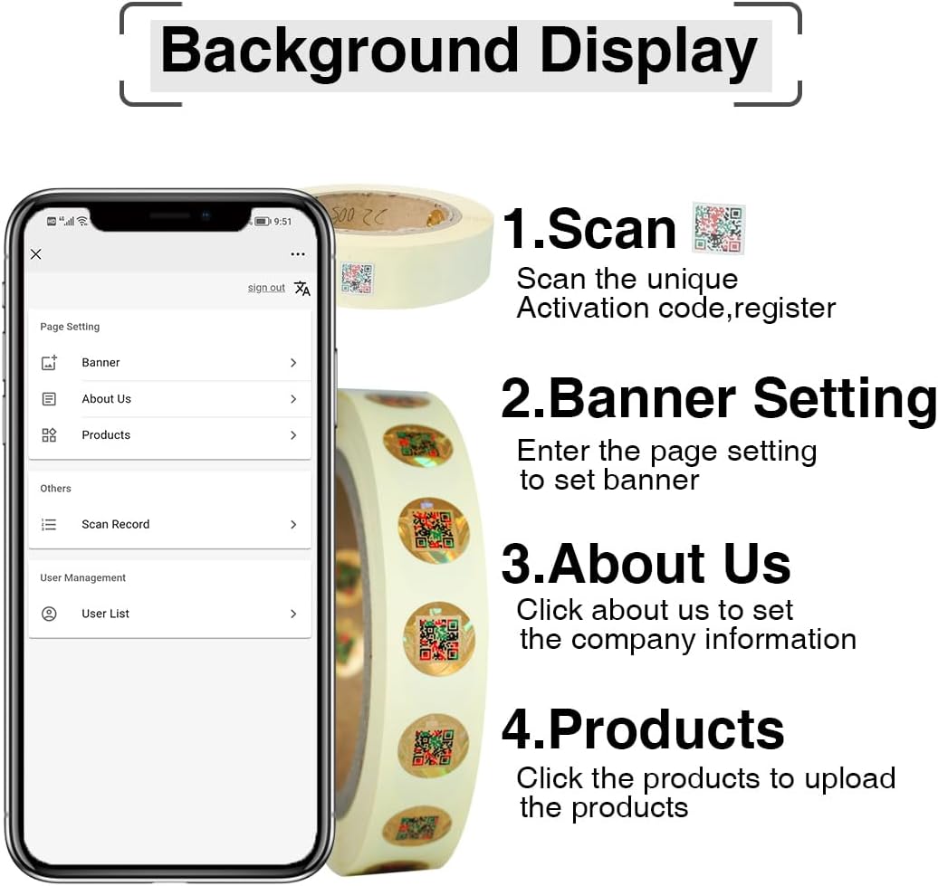 - ✔️【Smart 3D Anti-counterfeiting Sticker】- our software system is like a small website for you, here you can not only check authentic products but also display your company information and display your products.