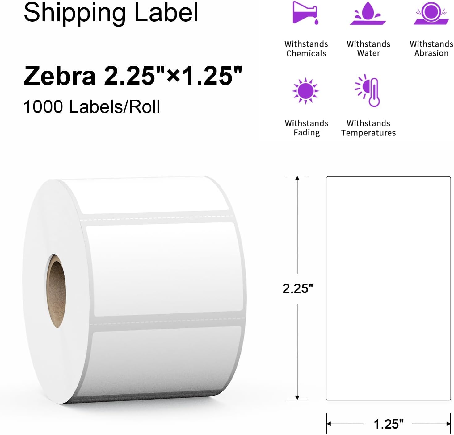 - Dimensions: You will get 2-1/4 x 1-1/4 Inch (57mm x 32mm) thermal shipping labels, 1” core. 12 Rolls per case, 1000 labels/roll, total 12000 Barcode Address Replacement Labels