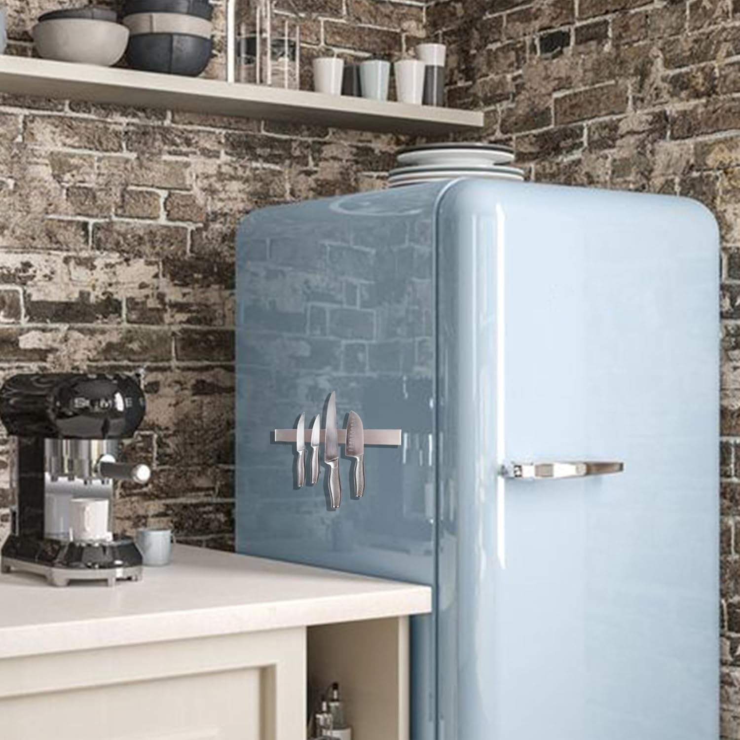 - ⚡Easy installation: Fridge knife magnetic strip – Upgraded version of the knife magnetic strip, which does not require special installation. High quality 304 stainless steel magnetic knife holder with super strong double-sided magnet. Fridge mounting - no installation required. Just place it to the fridge wall and you're done!