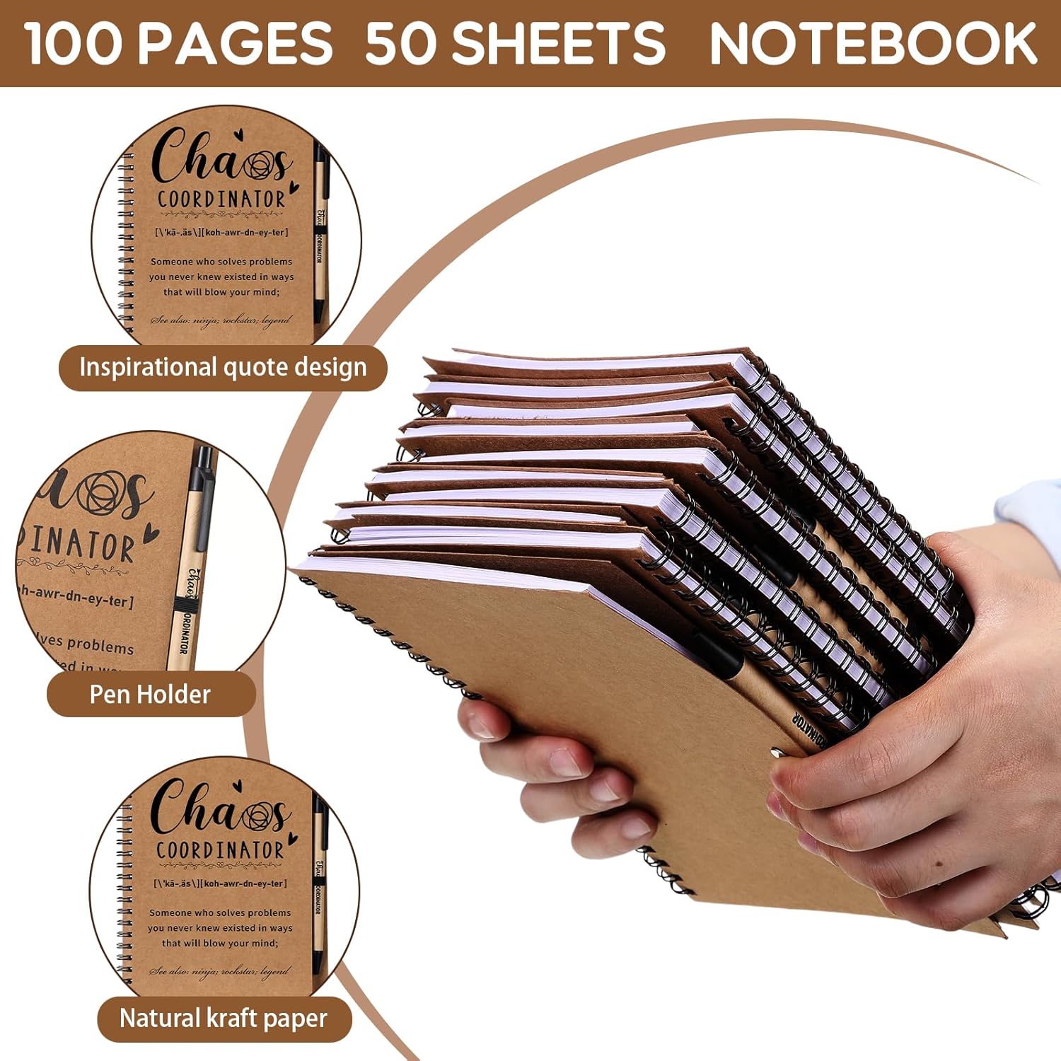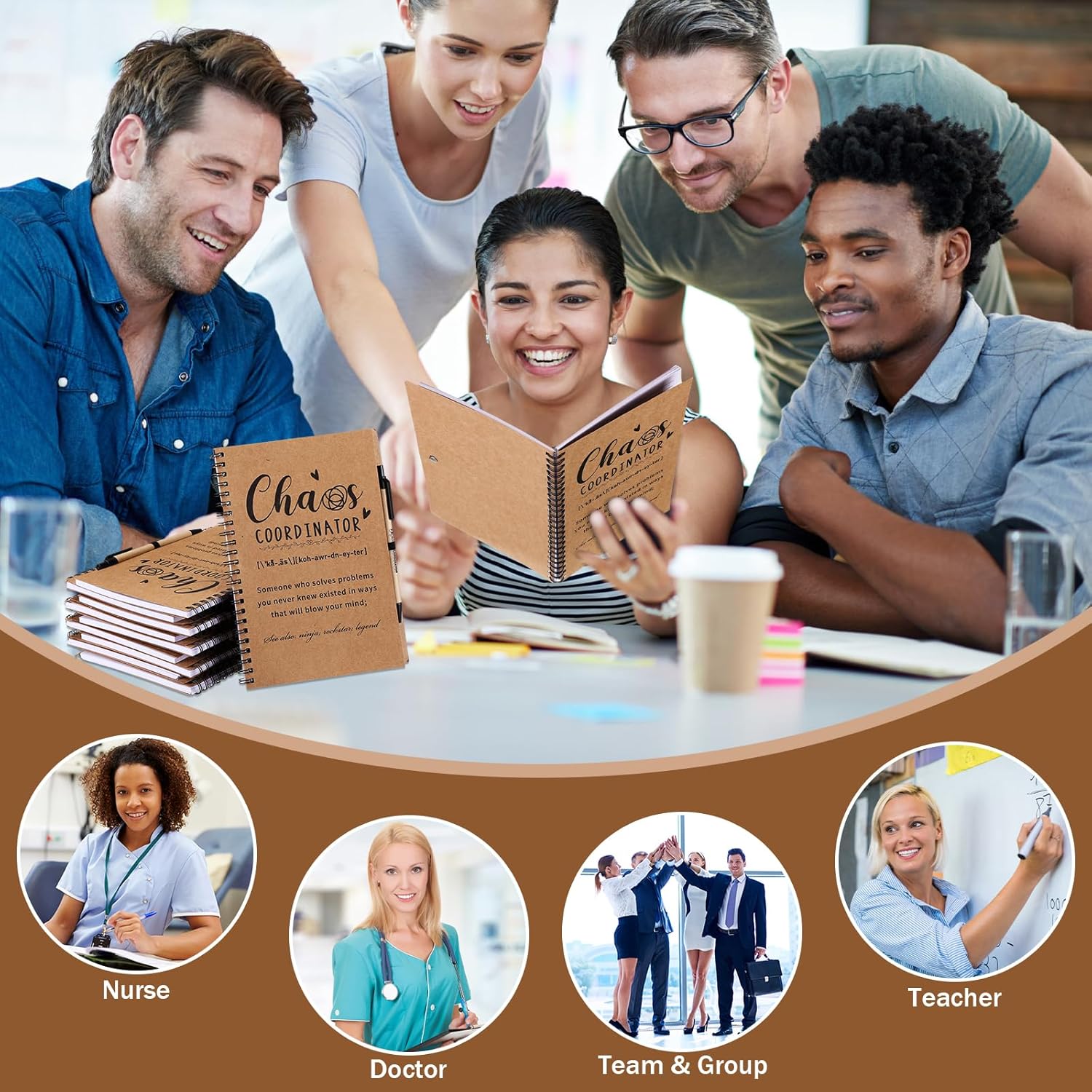 Nezyo 10 Sets Chaos Coordinator Gifts Employee Appreciation Week Notebook with Ballpoint Pen Spiral Notebook Teacher Appreciation Gifts Bulk for Women Men Journals Thank You Cowerker (Brown)