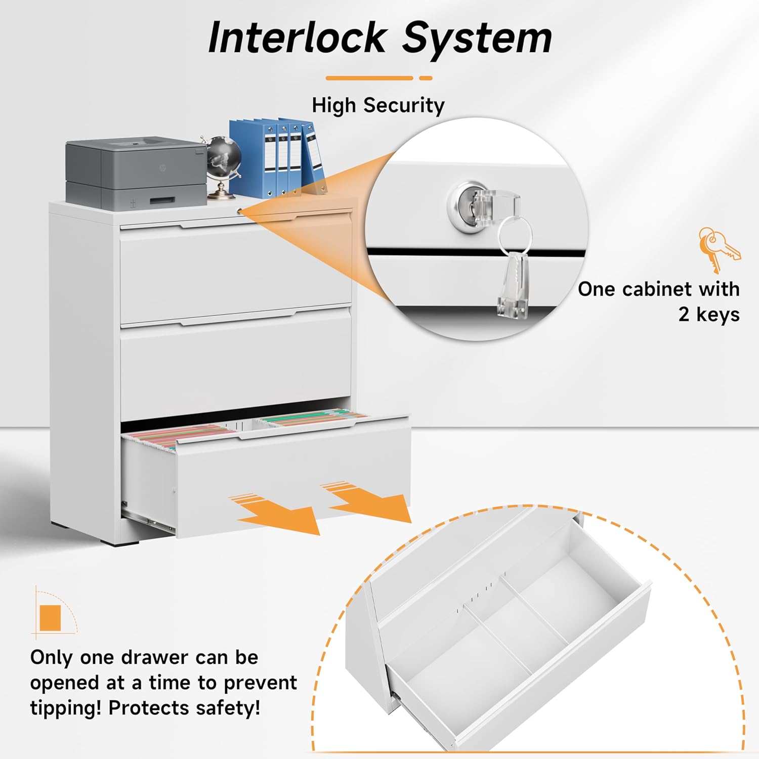 - 🪁【DURABLE ALL-STEEL METAL CONSTRUCTION】This 3 drawer lateral file cabinet is made of all-steel material, which is sturdy and durable and not easy to deform. It can hold a large amount of files! The surface is powder coated technology to prevent rust and corrosion. Perfect for long term use! It is ideal for office and home storage!