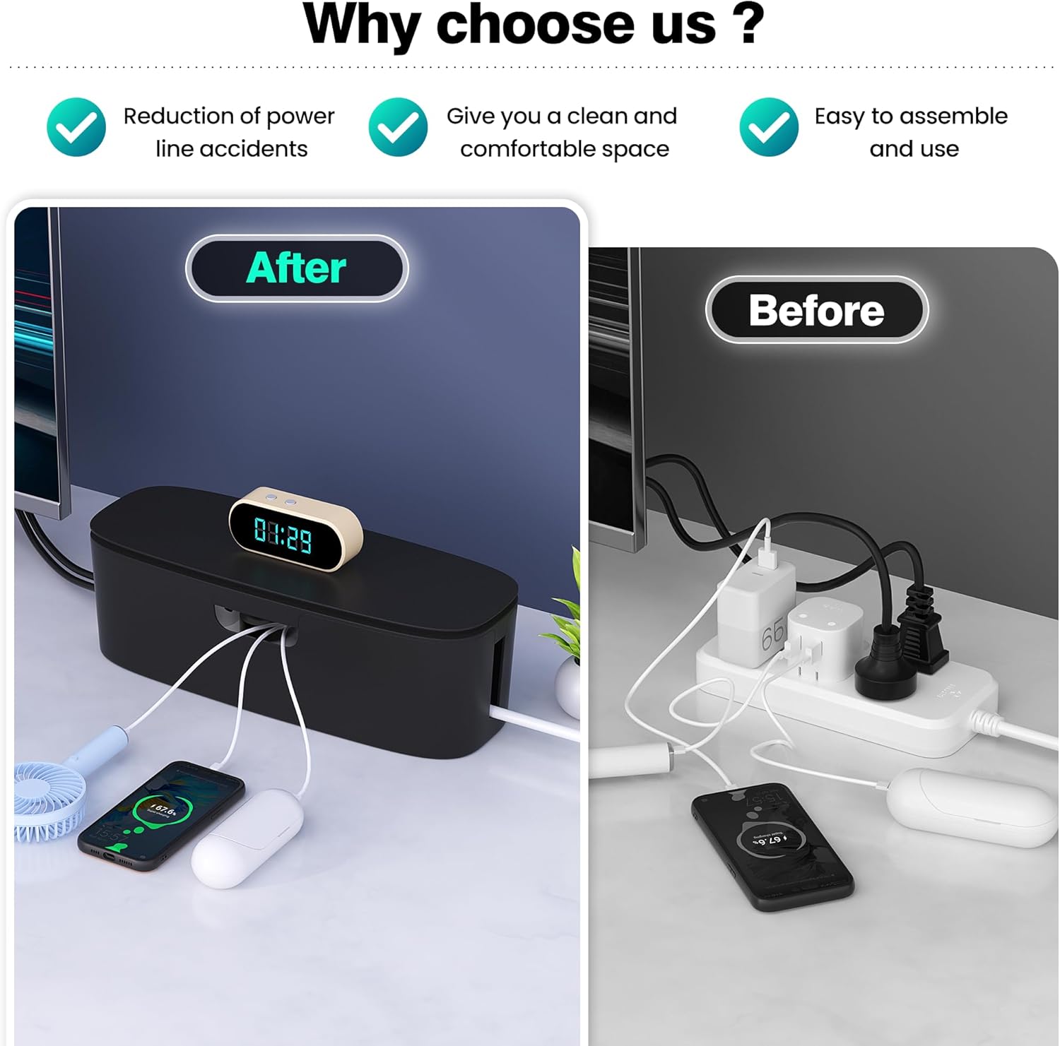 - [Efficient Cord Management Solutions] The cable organizer box with exciting new design which can hide and organizes your cables easily to keep your cables organized and suitable for most wires and cables in your home and office