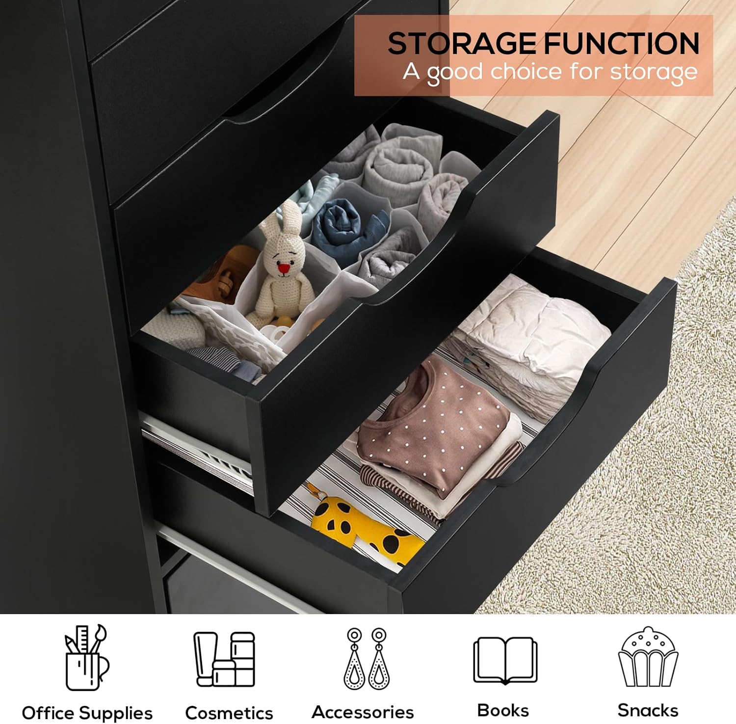 TUSY 5-Drawer Storage Cabinet, File Organizer with Caster Wheels, Chest of Drawers, Mobile File Cabinets, File Cabinets for Home Office, Under Desk Cabinet, Organization and Storage for Office, Black