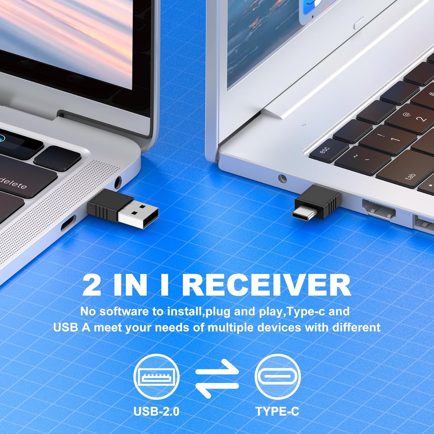 - 【USB-A & USB-C 2 in 1 Presentation Remote】The wireless presenter clicker features both USB-A and USB-C connections, allowing it to suitable for different types of device,such as macbook,laptop,pc