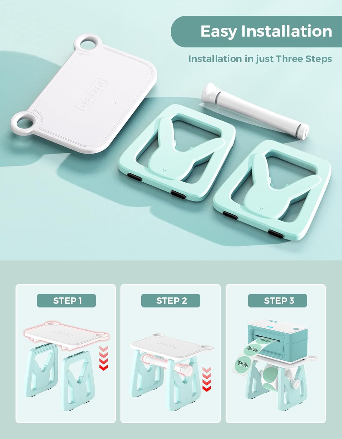 - Two-step Assembly: Say goodbye to complicated setups. You can put the four main parts of the label roll holder together in just two simple steps