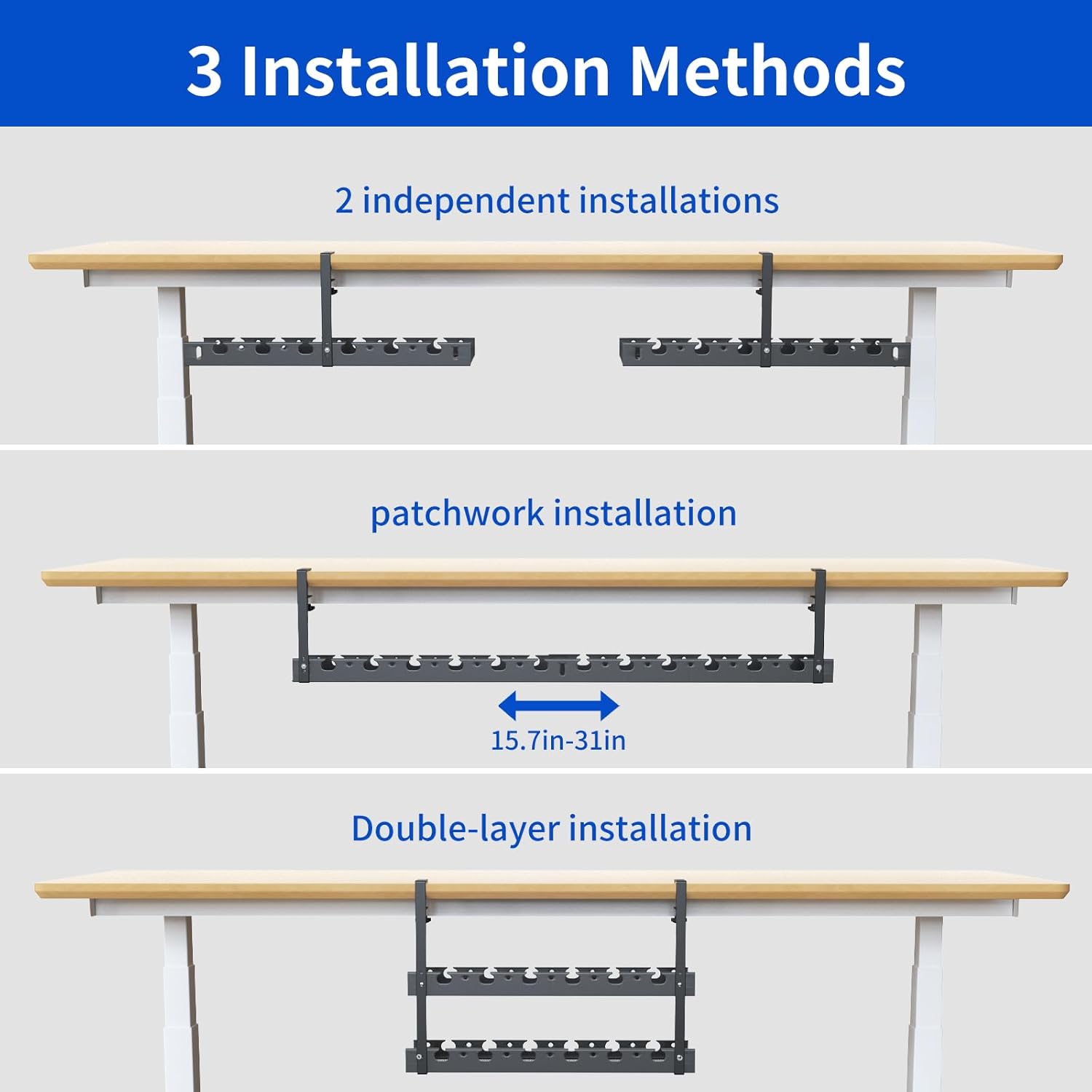 - MULTI-MODEL 31INCH EXTENDABLE CABLE TRAY: Our Under Desk Cable Management Can Expanded To a Maximum Of 31 Inches, More Storage Space Than Others, And Three 9.45 * 4.33-Inch Power Strips Can Be Placed At The Same Time. It Can Make Many Messy Cables Under Your Desk Clean, And Free Up The Space Under Your Desk