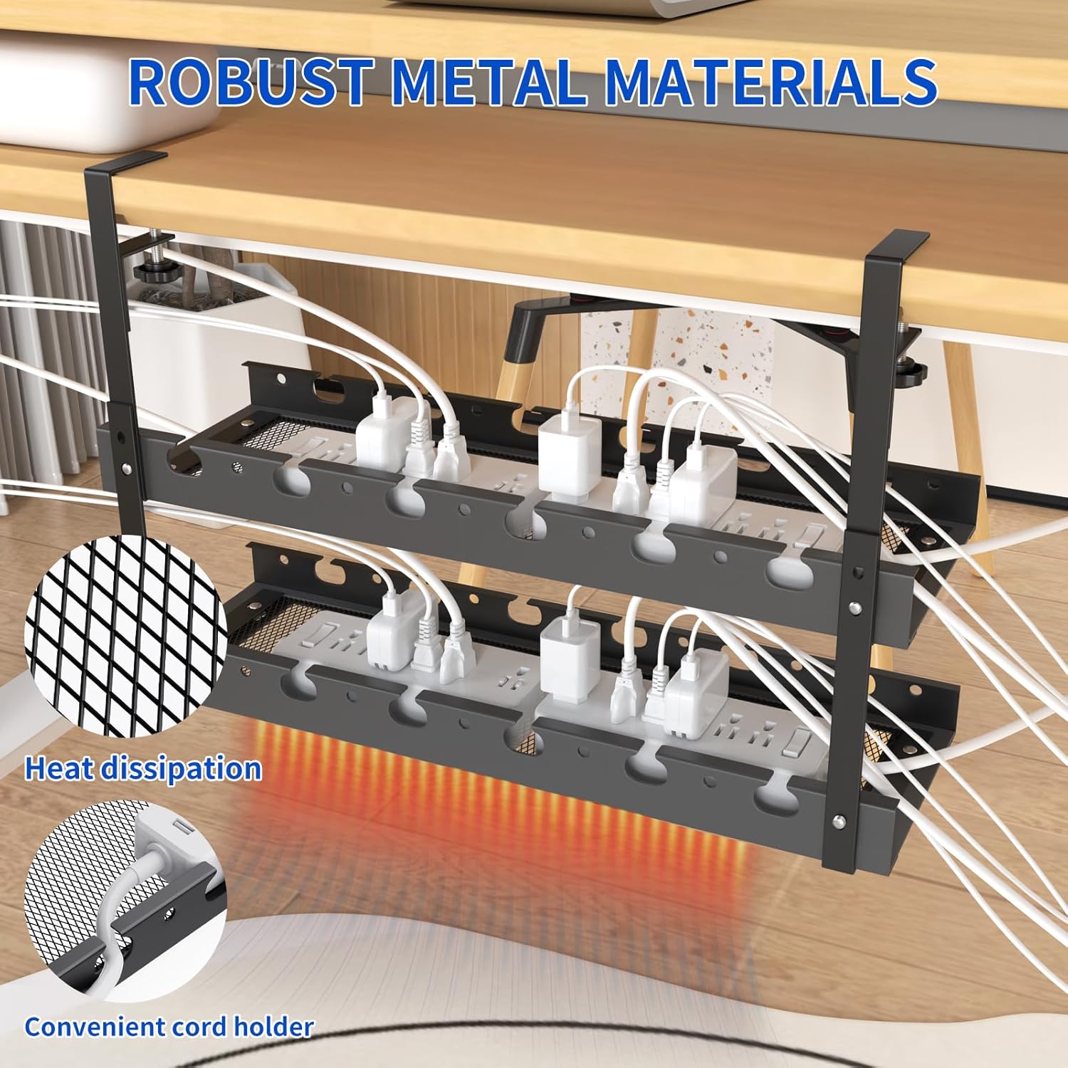 - DURABLE AND STURDY: The Under Desk Cable Management Is Made Of High-Quality Carbon Steel, Which Is More Durable. The Hollow Design Can Effectively Reduce Dust Accumulation, Better Fix The Cable While Maintaining Good Air Permeability, High Heat Dissipation Efficiency, And Avoid Overheating Of Cable Or Power Strip