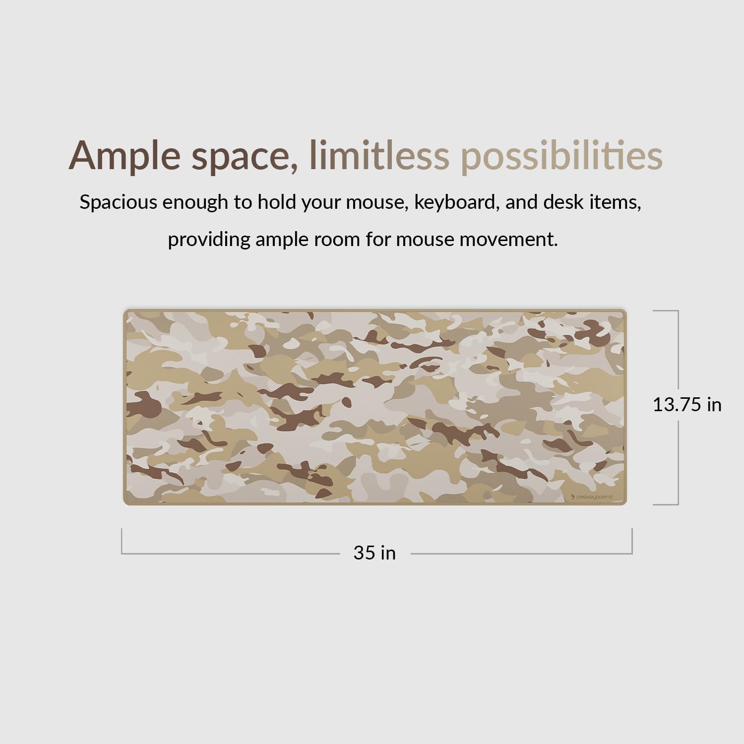 - EXTENDED LARGE SIZE: Measuring an impressive 35 x 13.75 inches, the Desert Camo Desk Mat offers a vast surface for your mouse, gaming keyboard, and other essentials. Dive into work or games with ample space and enjoy having all the room you need to get the job done.