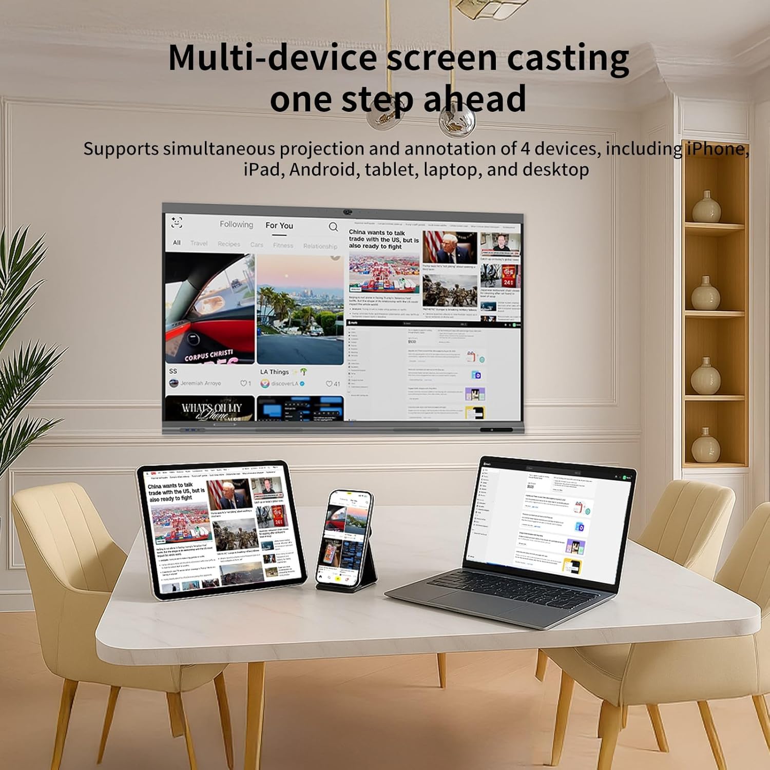 - [Excellent Upgrade] TIBURN Inspur V6 use with the most flagship configuration by 2025, equimed with 8 corel CPU /GPU and Android 13 OS,Integrating a giant screen + conference AI camera + 8 array microphones + Hall Magnetic sensor + NFC, etc., will reconstruct a new form of hybrid smart office. TIBUTN Inspur V6 combines intelligent digital whiteboard and whiteboard software to build an open ecosystem with enterprise-level data protection. Meeting, ideation, brainstorming and presentation, all on one device.