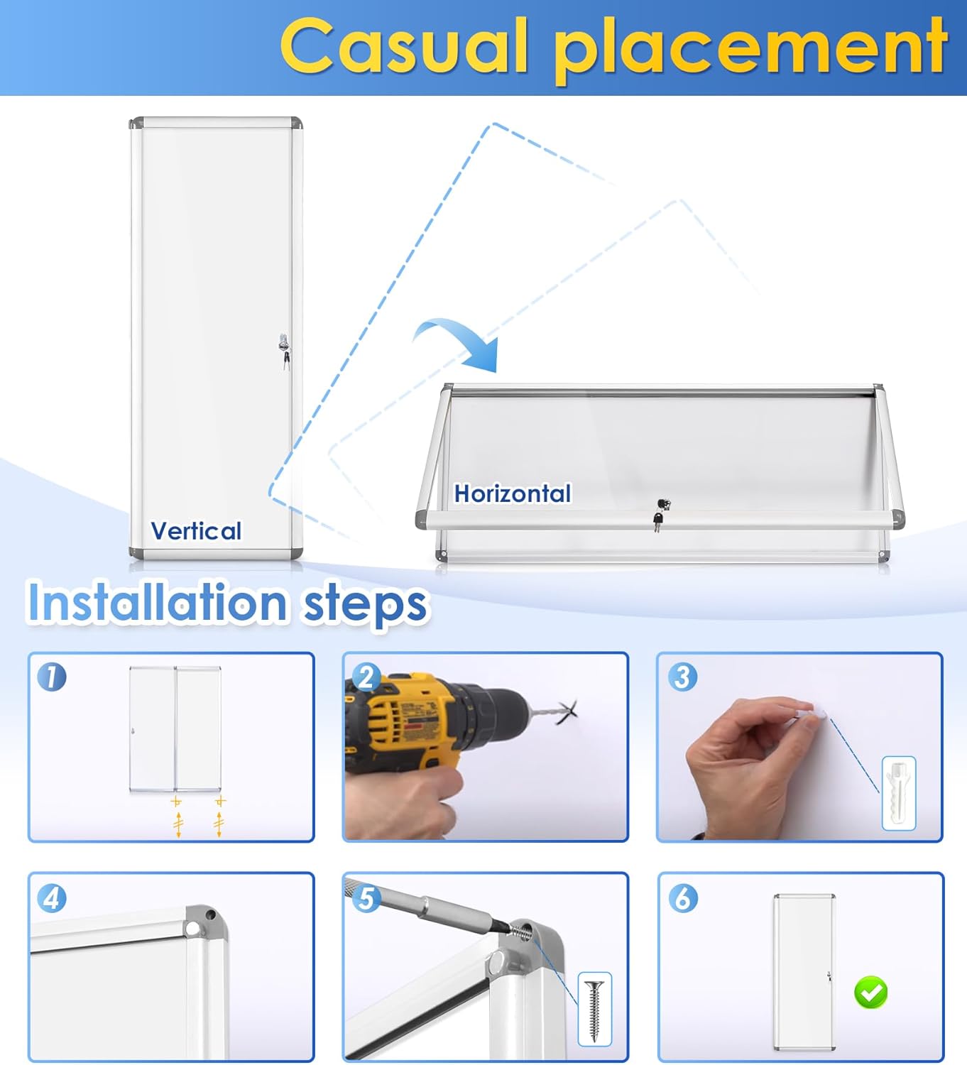 - Professional and Organized Look —Offering a compact solution to save valuable wall space and helps to keep the wall clean and organized,such as an office, school, or community center