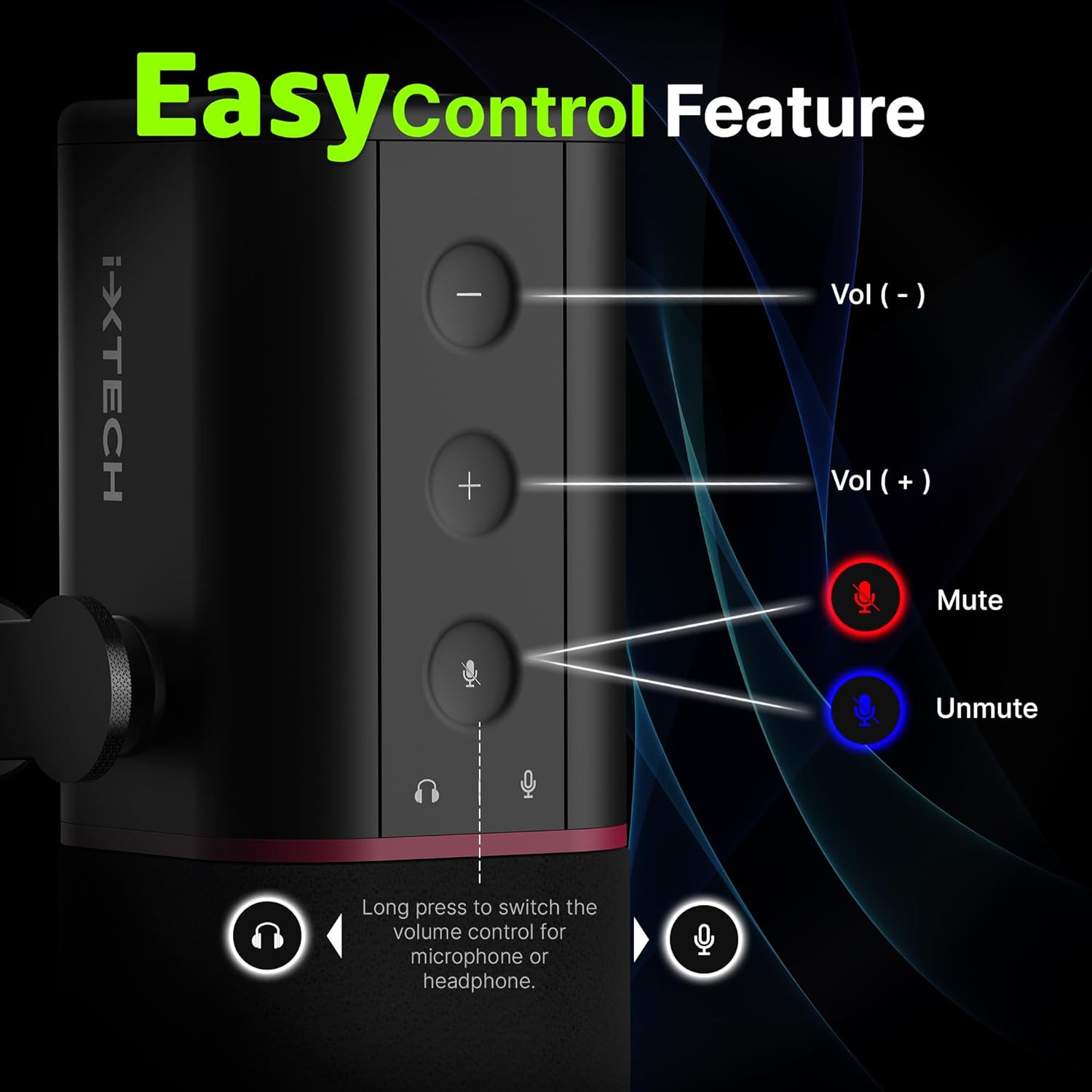 IXTECH Cardioid Dynamic Microphone with Mic Cover, Vocal USB XLR Microphone for Podcasting, Streaming, Recording, Gaming and Voice-Over (Black)