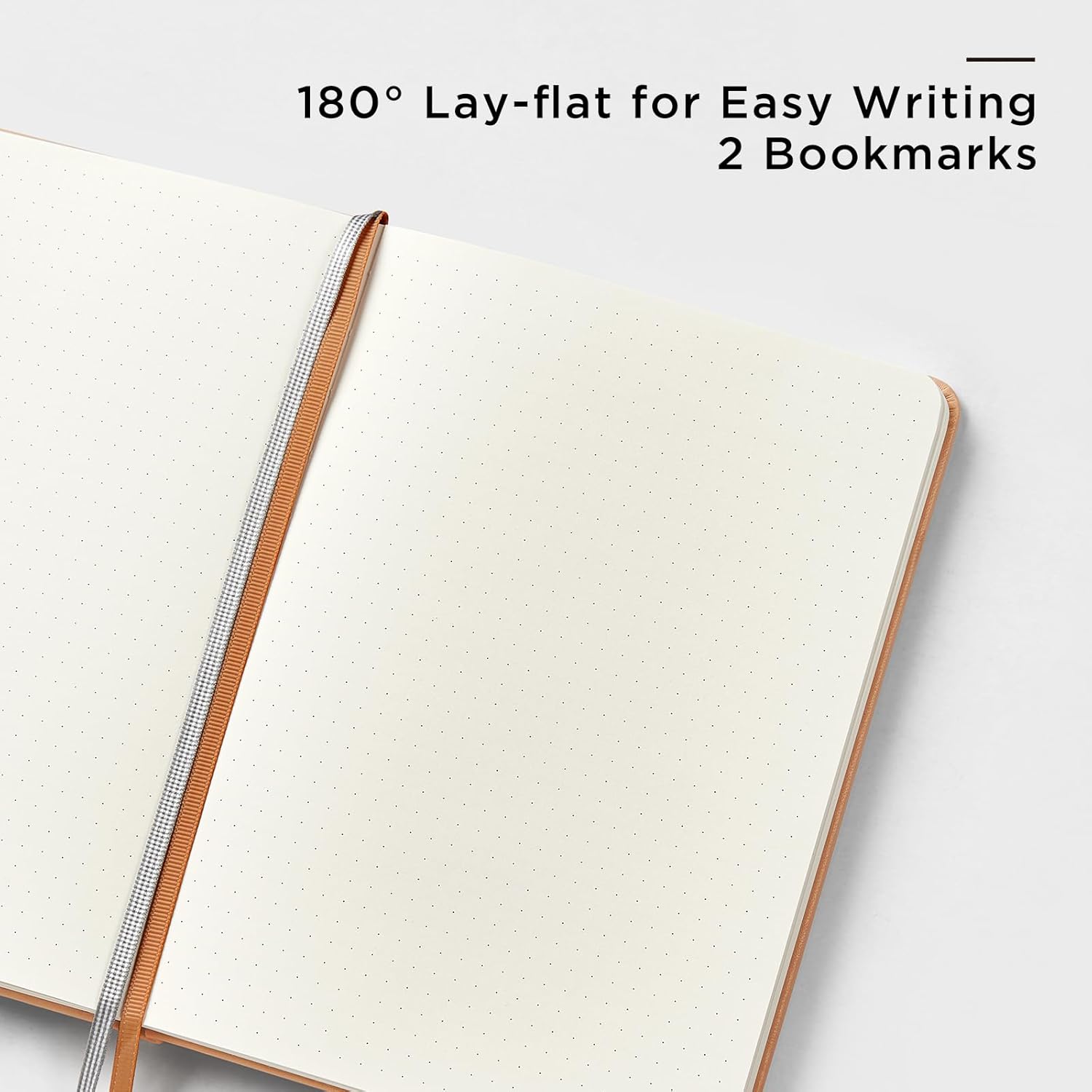 - 180° LAY-FLAT DESIGN: The lay-flat design allows for easy writing and ensures that you can utilize every page efficiently. Journaling, note-taking and planning has never been easier! 2 Bookmarks to help you find important content faster