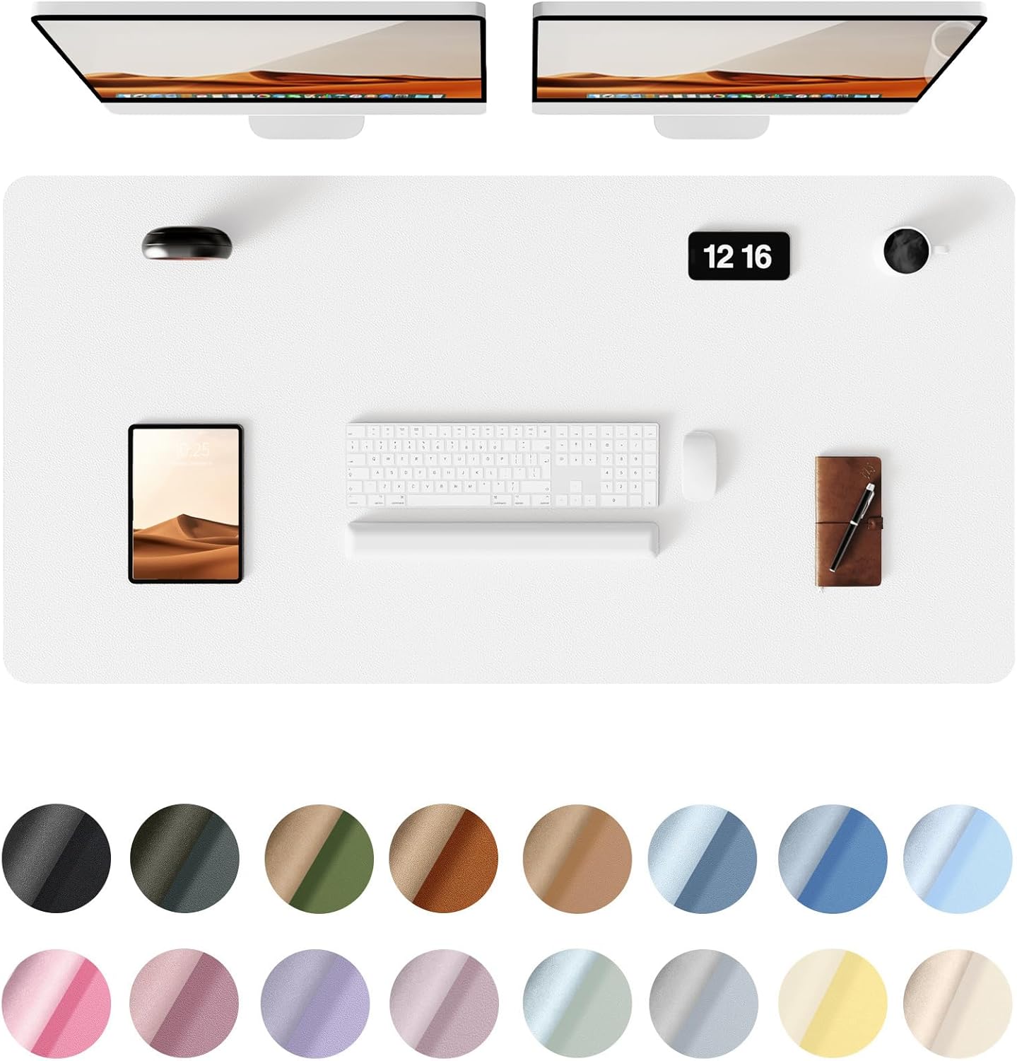 YSAGi Leather Desk Protector, Office Mat, Large Mouse Mat, Non-Slip PU Leather Blotter, Laptop Desk Pad, Waterproof Writing Pad for Office and Home (White, 47.2" x 23.6")
