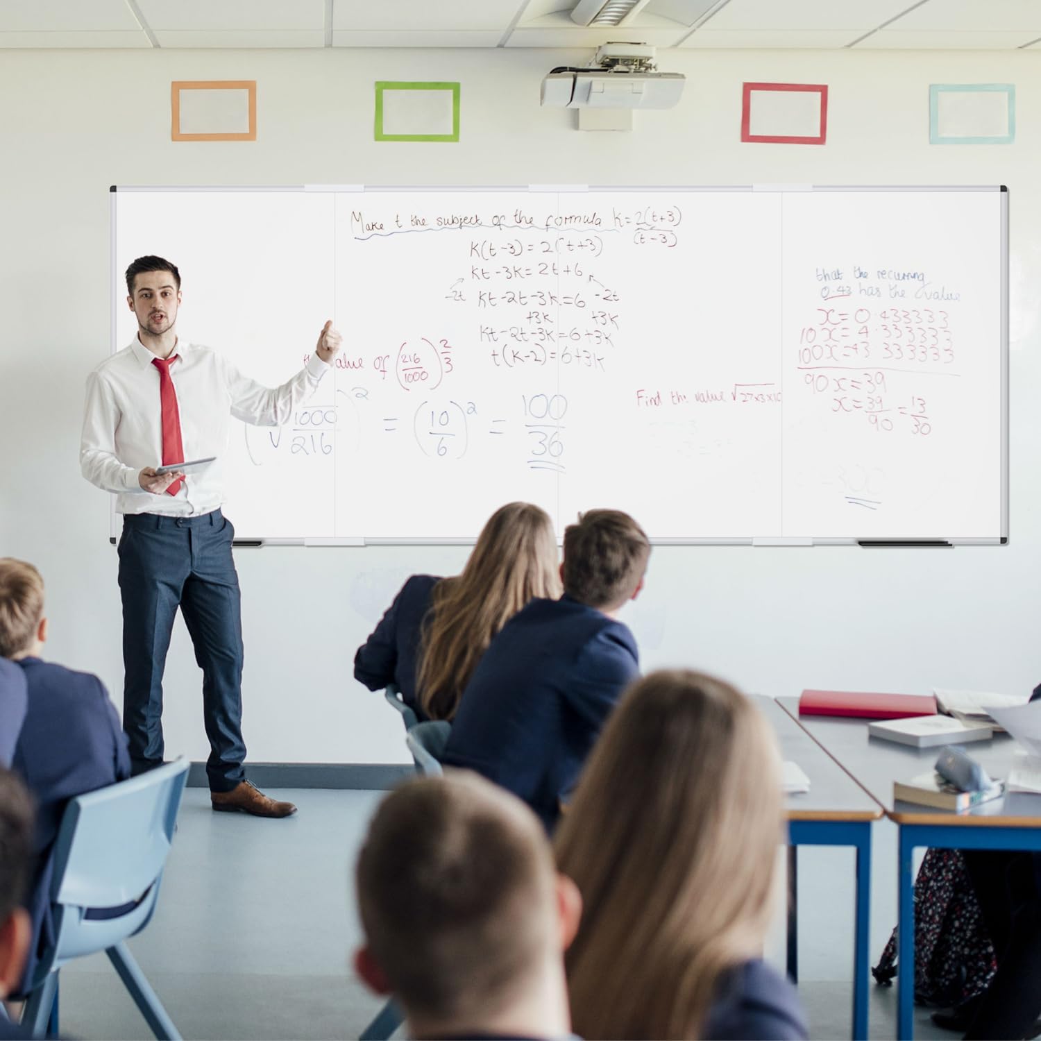 - [High Quality Details] Smooth & durable magnetic writing surface, easily dry wipe with all dry-erase markers. Folding design ensures that the whiteboard will not warp in transit. Anti-Scratch silver finished aluminium frame, ABS plastic corner with screw-fixing in corners, Detachable Marker Tray.