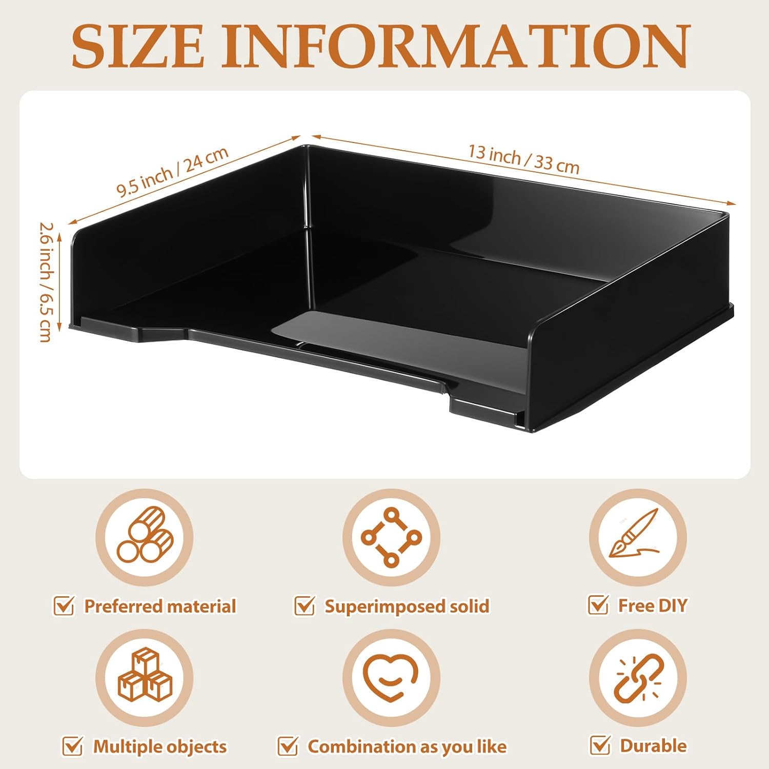 - Spacious and Organized Storage: measuring approximately 13 x 9.5 x 2.6 inches or 33 x 24 x 6.5 cm, the letter tray provides ample space for your essential belongings; It can store documents, magazines, notepads, books, artwork, and even work orders neatly and efficiently; With this organizer, you can manage your desk space more effectively and keep your things within easy reach