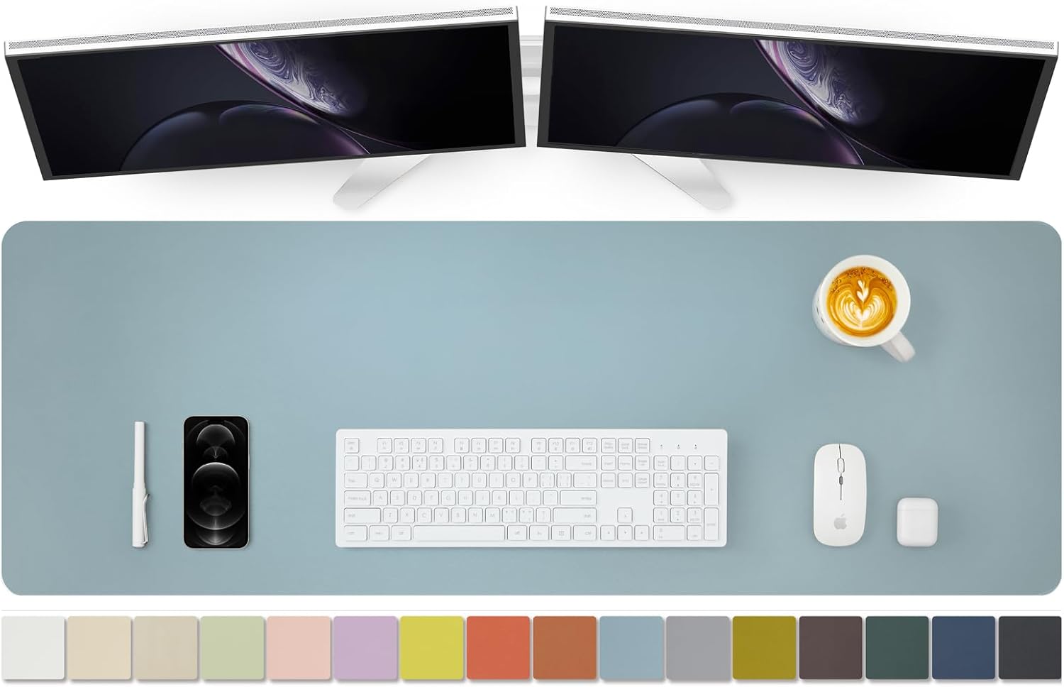 Large Desk Mat - 47.2"x 17" Non-Slip PU Desk Pad for Office and Home - Ideal for Large Mouse Pad and Desk Mats on Top of Desks(Light Blue)
