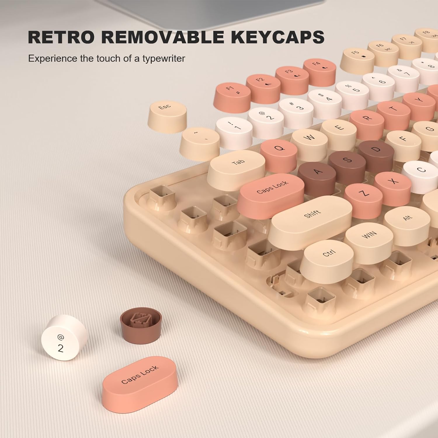 - Retro Typewriter Keyboard: Experience the nostalgic charm of typewriters with the MOFII computer keyboard's retro round keycaps, while staying comfortable during long sessions thanks to its ergonomic foldable stand and anti-slip pads.