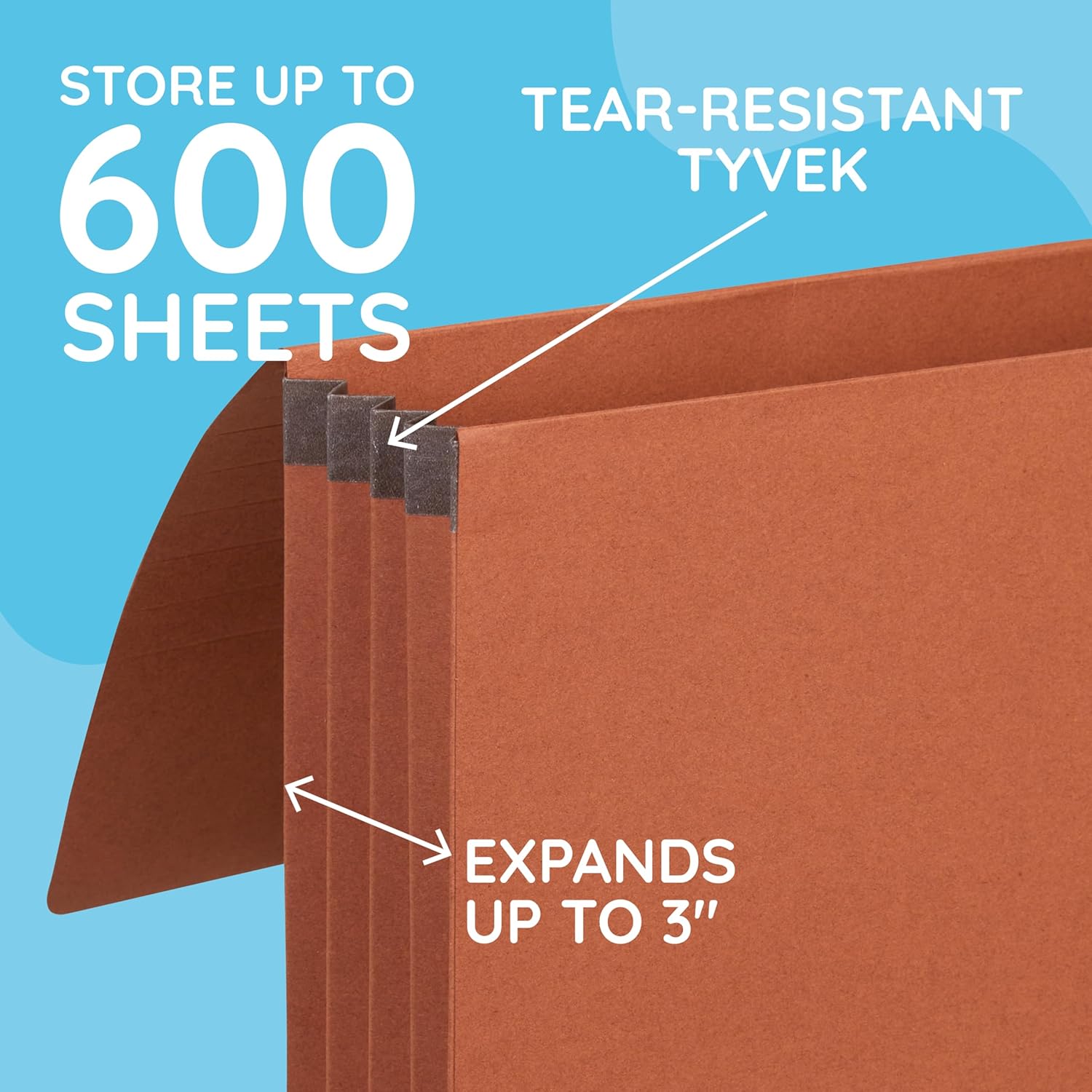 - Legal size, 14" W x 9.5" H, with 3" expansion