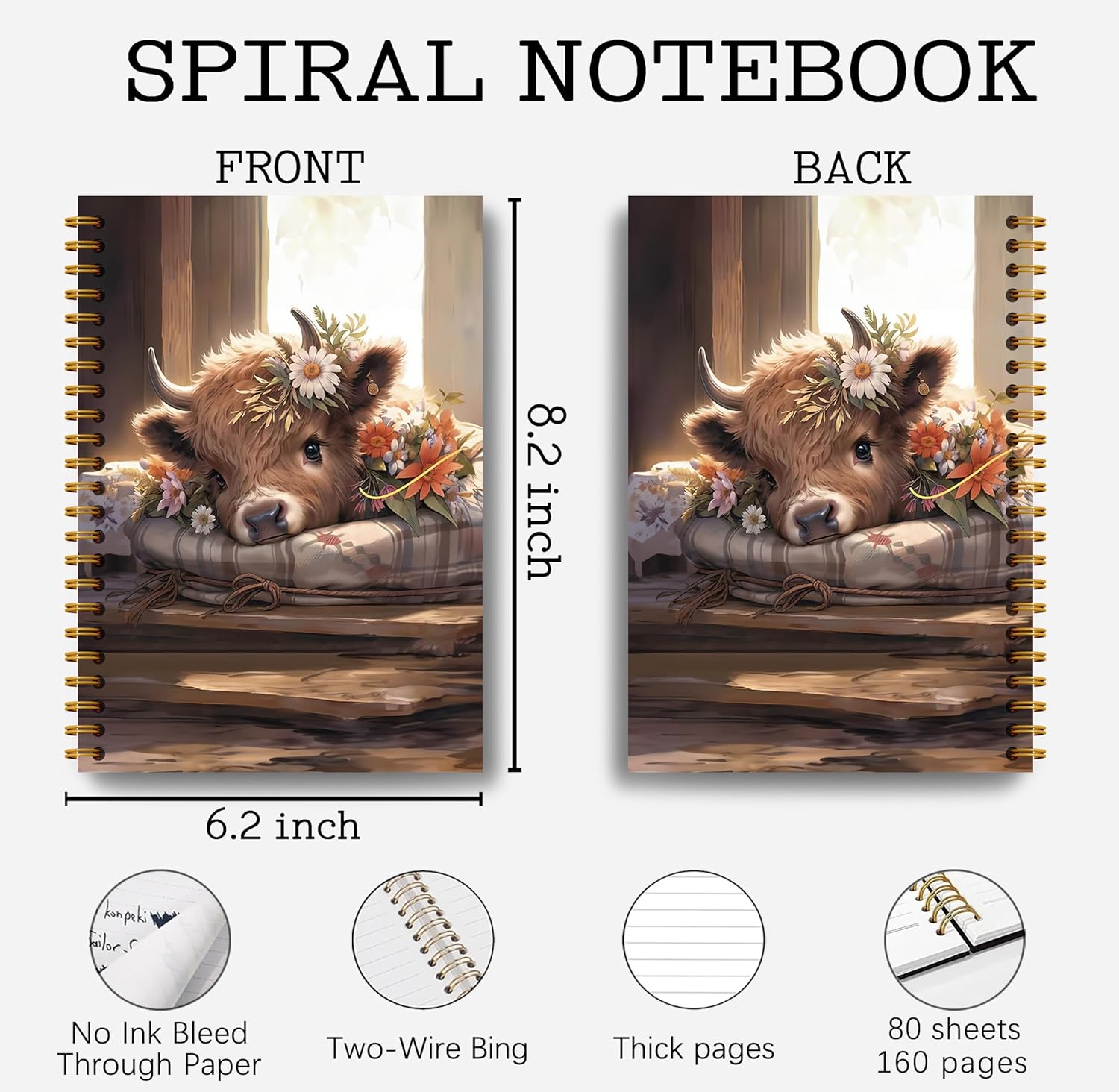 Highland Cow Notebook Journal - Spring Highland Cow Gifts, Daisy Floral Spiral Journal Notebook 5.5×8.3, Cow Gifts for Women, Cow Gifts for Cow Lovers, 164 Pages