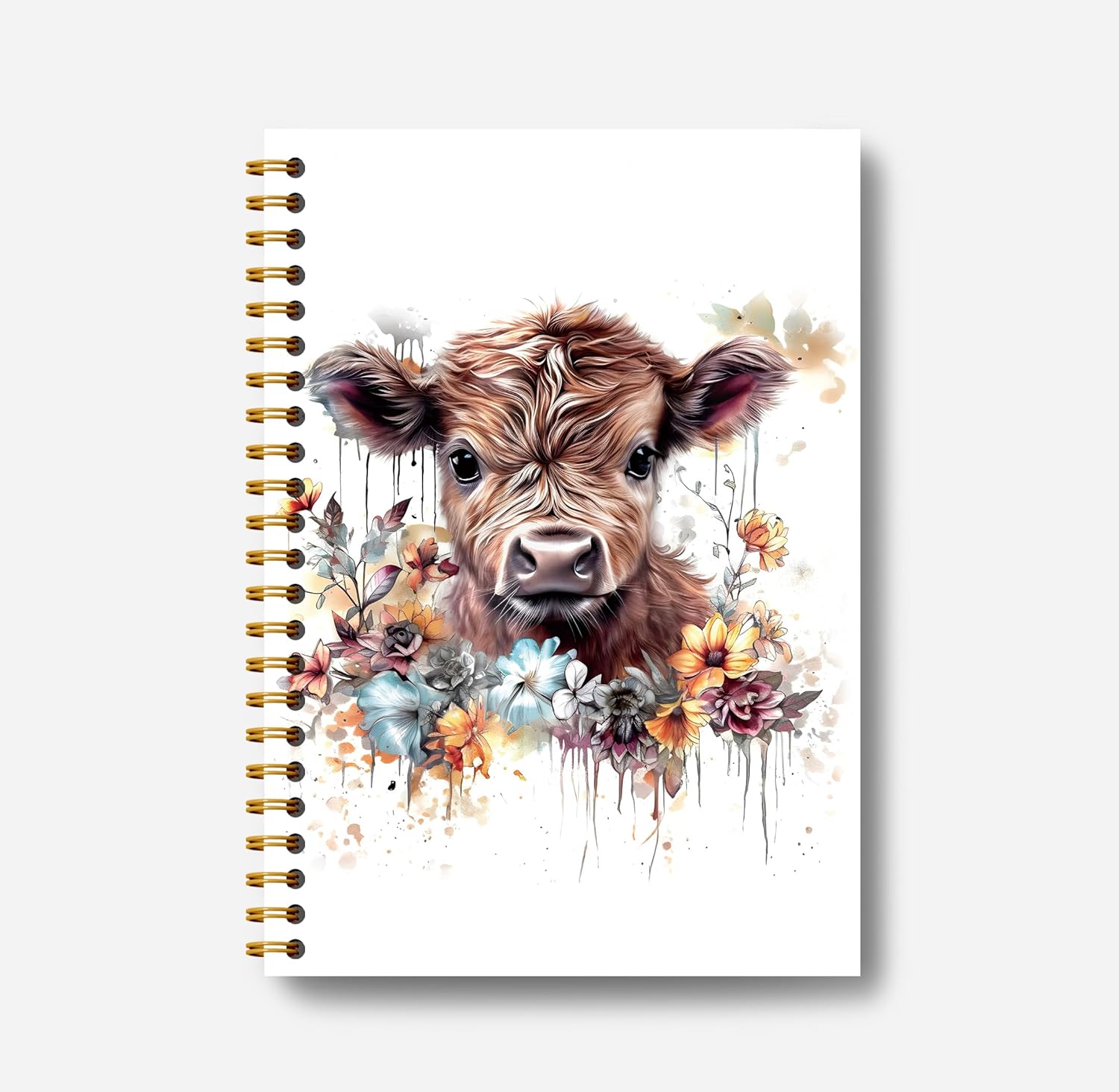 Highland Cow Notebook Journal - Highland Cow Gifts, Floral Spiral Journal Notebook 5.5×8.3, Cow Gifts for Cow Lovers, Cow Gifts for Women, 164 Pages