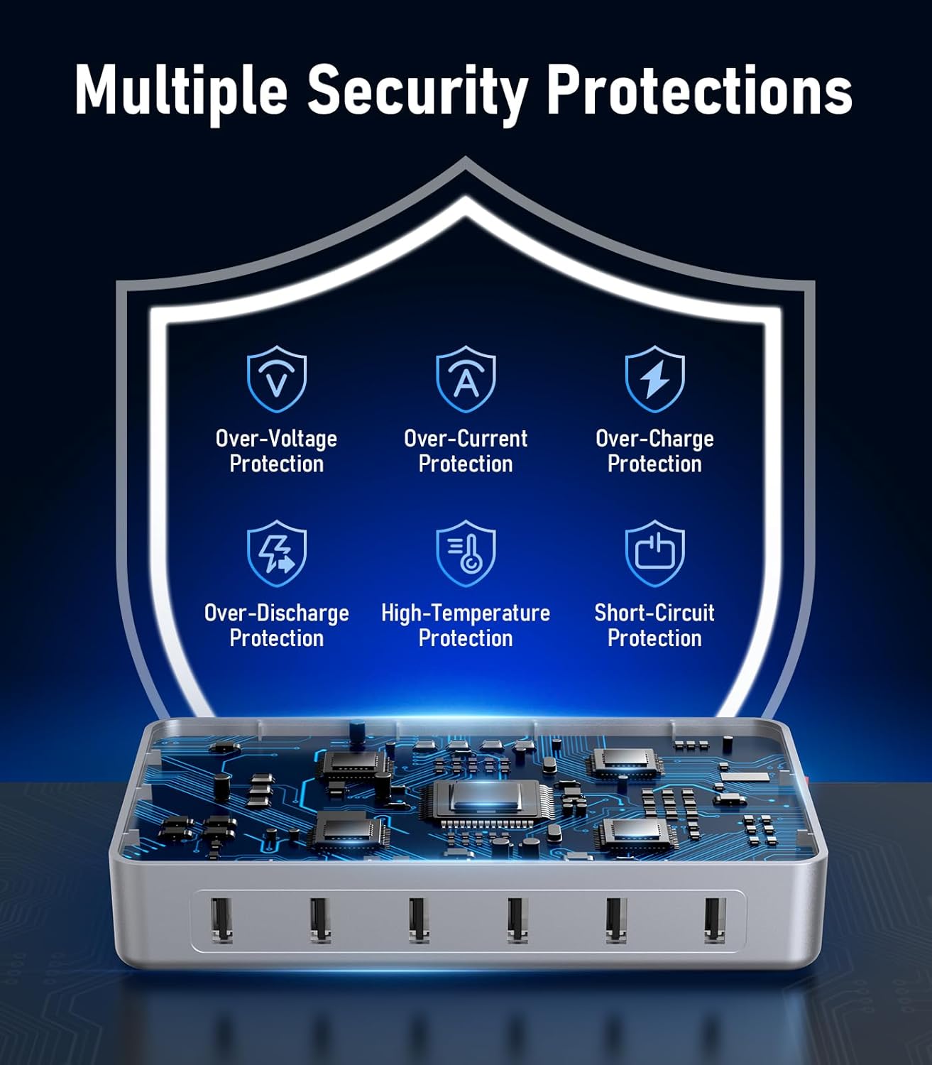 CREATIVE DESIGN 6 Port Charging Station for Multiple Devices,50W Multi Phone Charging Station with 6 Cables, Multiple USB Charger Station Designed for Cellphone iPad iPhone Tablet (Silver)