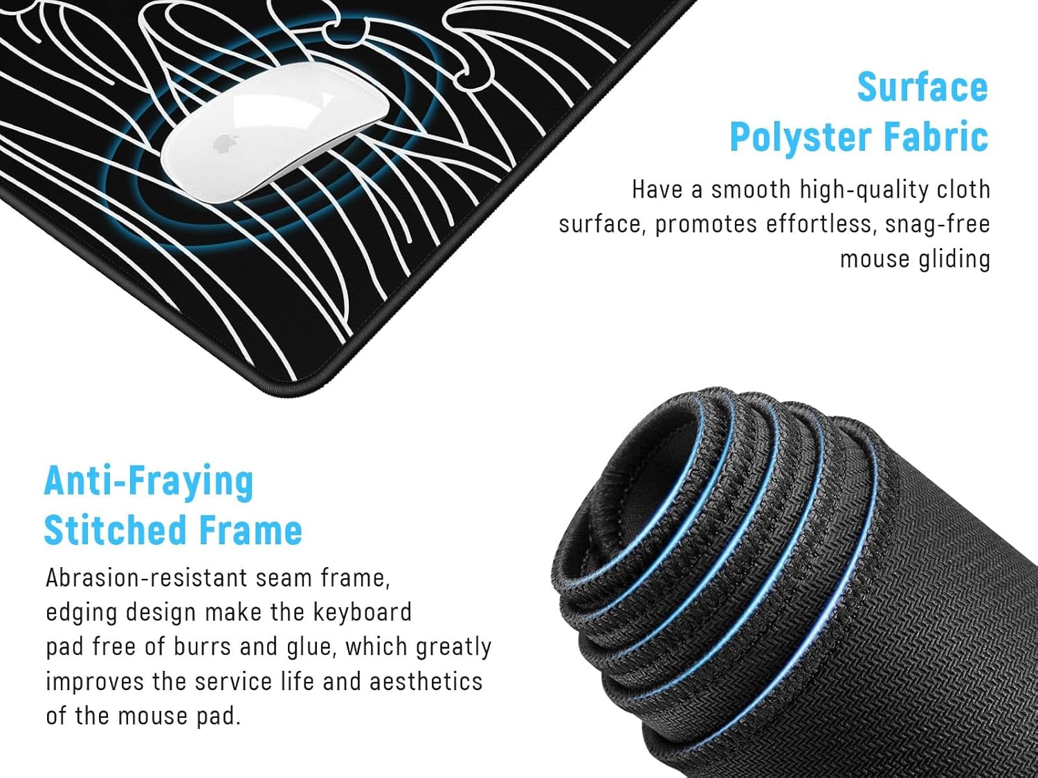 - Anti-fray stitched edges: The big mouse pad is designed with anti-fray stitched edges, which can prevent the edges from fraying or peeling, ensuring a longer service life.