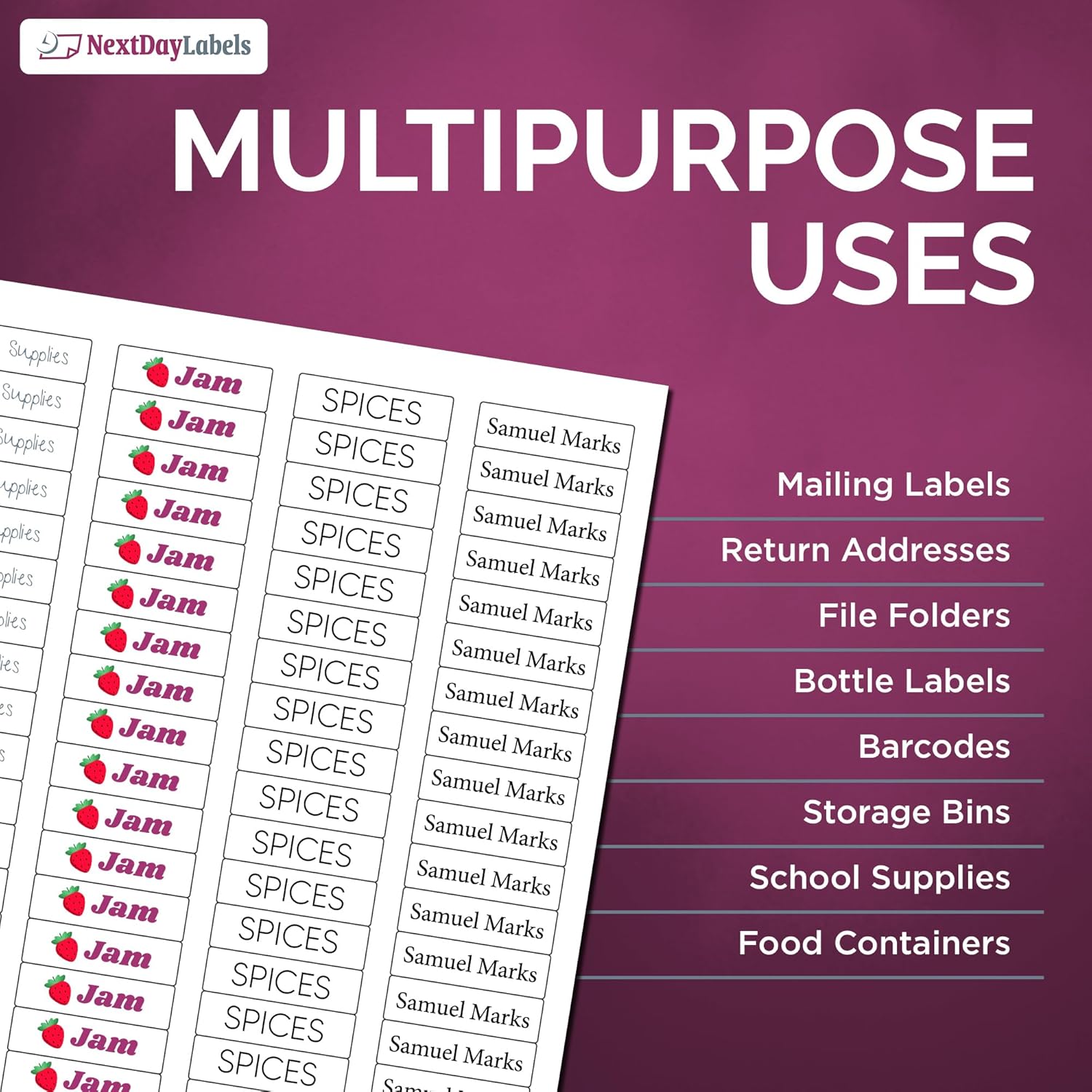 - HIGH-VOLUME MAILING LABELS - Perfectly sized for address labeling and shipping stickers. Use these 1-3/4" x 1/2" blank address stickers for envelopes, printable labels for bottles, small labels for folders, file labels, name labels, sticky labels for organizing, bulk mailing, and more.
