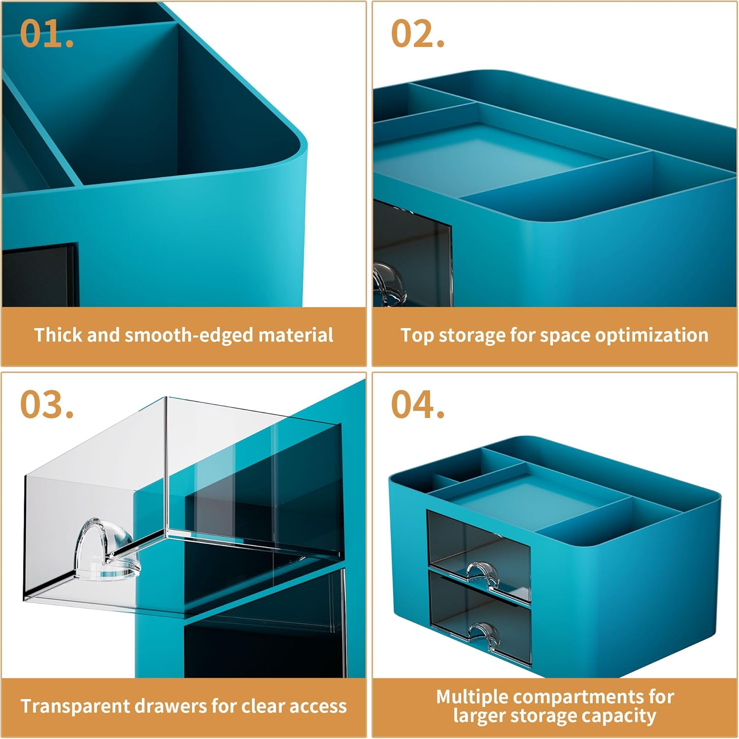 - ăConvenient And MultifuctionăThis Desk Caddy is no installation required not only perfect for storing your desktop stationery and many other desk widgets but also great for storing your makeup brushes, nail polishes, lipsticks, and other small personal items sorted by type. The transparent drawer makes it way easier to find what you need! and You can put any other daily necessities on the organizer, It helps you keep your stuff organized