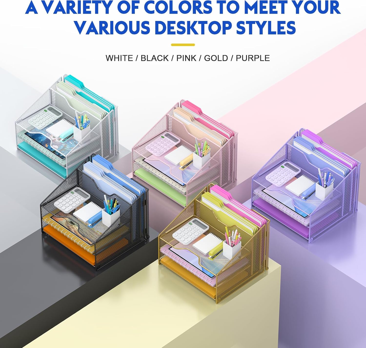 - Unique 3+2 Shelves Design: 3 Tier sliding trays are perfect for storage all your documents, file folders and other desk accessories, 2 upright section is ideal for place your other paper/letters vertically.
