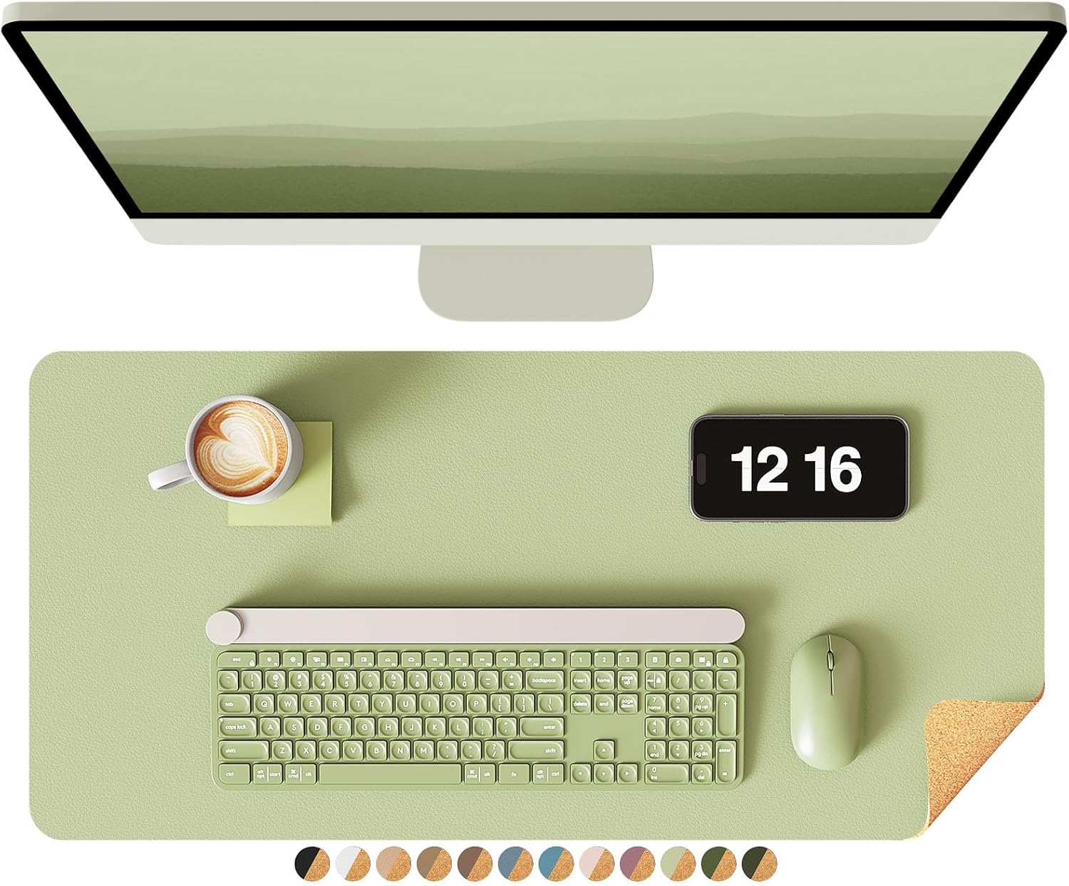 YSAGi Double-Sided Desk Pad, 23.6"x13.7" Leather Desk Mat, Eco Cork Desk Pad Protector, Large Mouse Pad for Desk, Waterproof Desk Blotter Pad, Desk Writing Pad for Office Work/Home(Matcha Green/Cork)