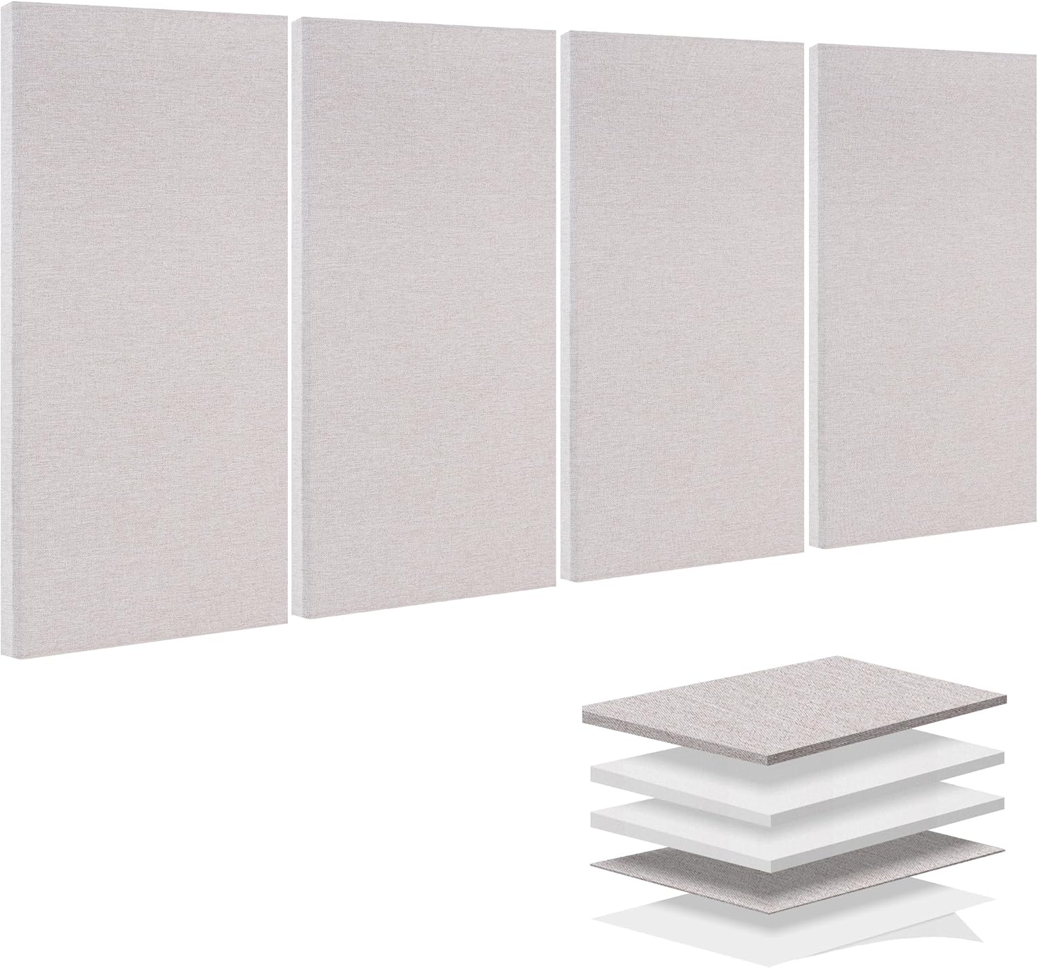 BUBOS 4 PCS Acoustic Panels,23.6''x11.8'' Fabric Soundproof Wall Panels,Self-adhesive Sound Absorbing Panels for Studios, Office, Home Theater,Fabric-Clad Linen