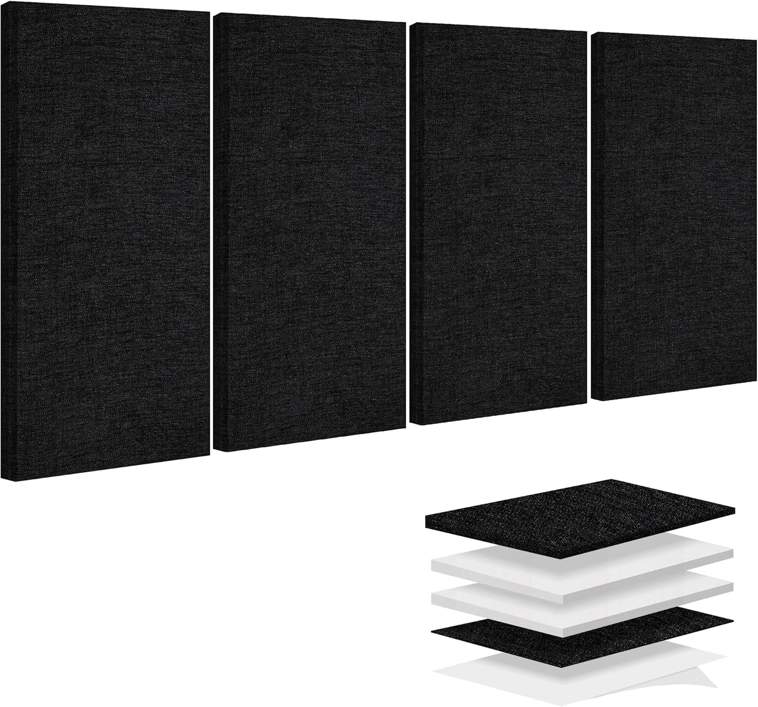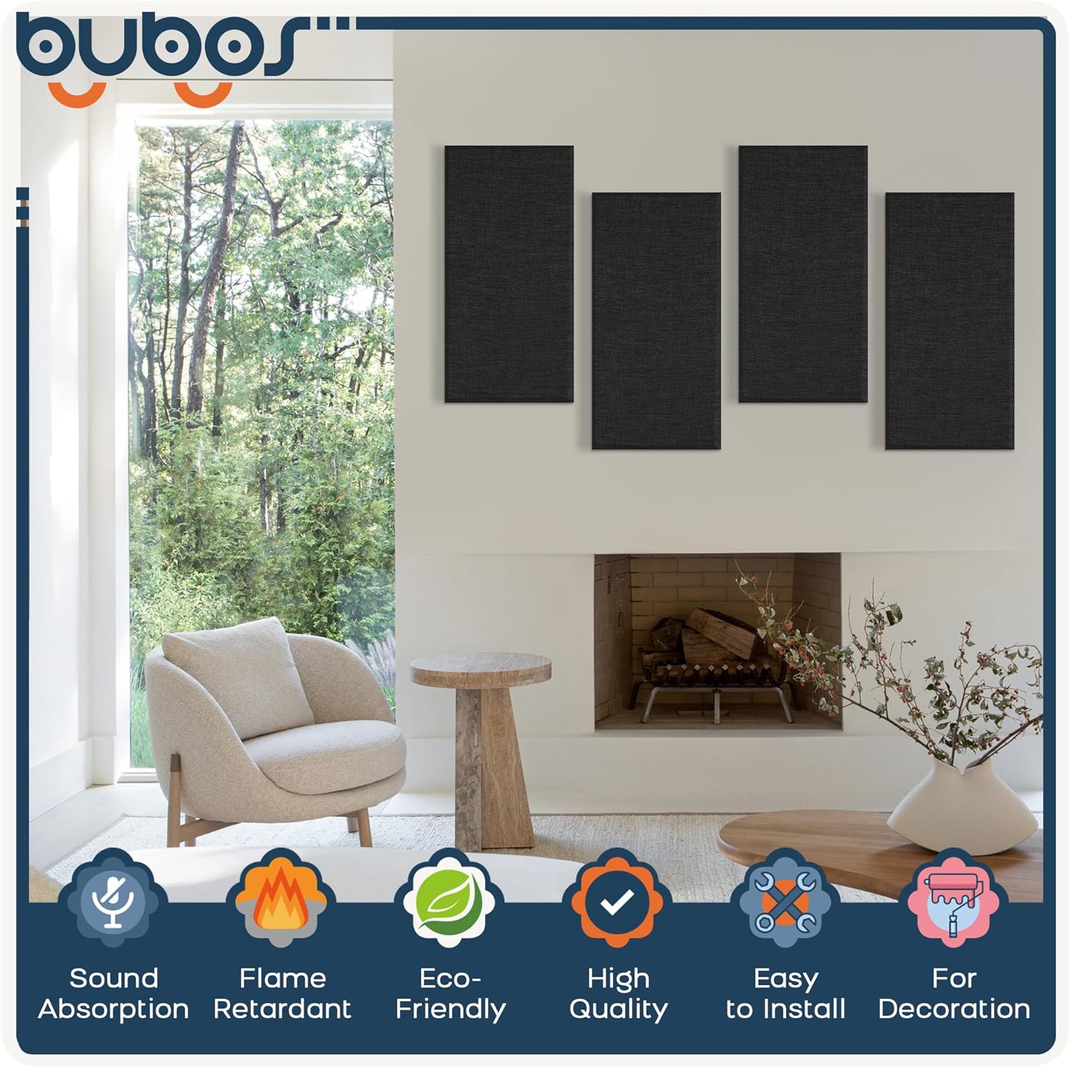 BUBOS 4 PCS Acoustic Panels,23.6''x11.8''Fabric Soundproof Wall Panels,Self-adhesive Sound Absorbing Panels for Studios, Office, Home Theater,Fabric-Clad Matte Black