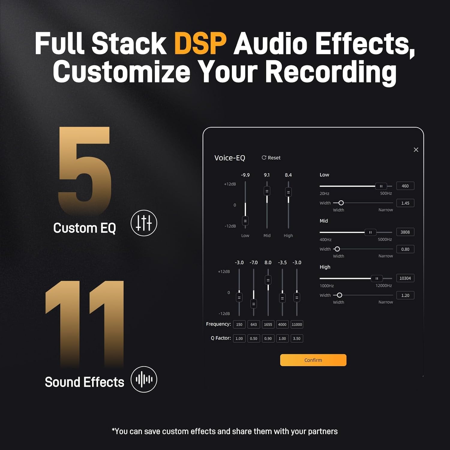 - ENHANCE YOUR SOUND WITH ADVANCED SOFTWARE CONTROL: Maono Link personalized software allows you to customize your sound with ease. Activate noise reduction mode, adjust the 5-band EQ settings, and fine-tune microphone gain and monitoring ratio intuitively. With 11 built-in DSP effects and a memory function, you can preserve your carefully crafted sound profiles even when switching equipment. These user-friendly features empower you to perfect your audio online, taking charge of your sound