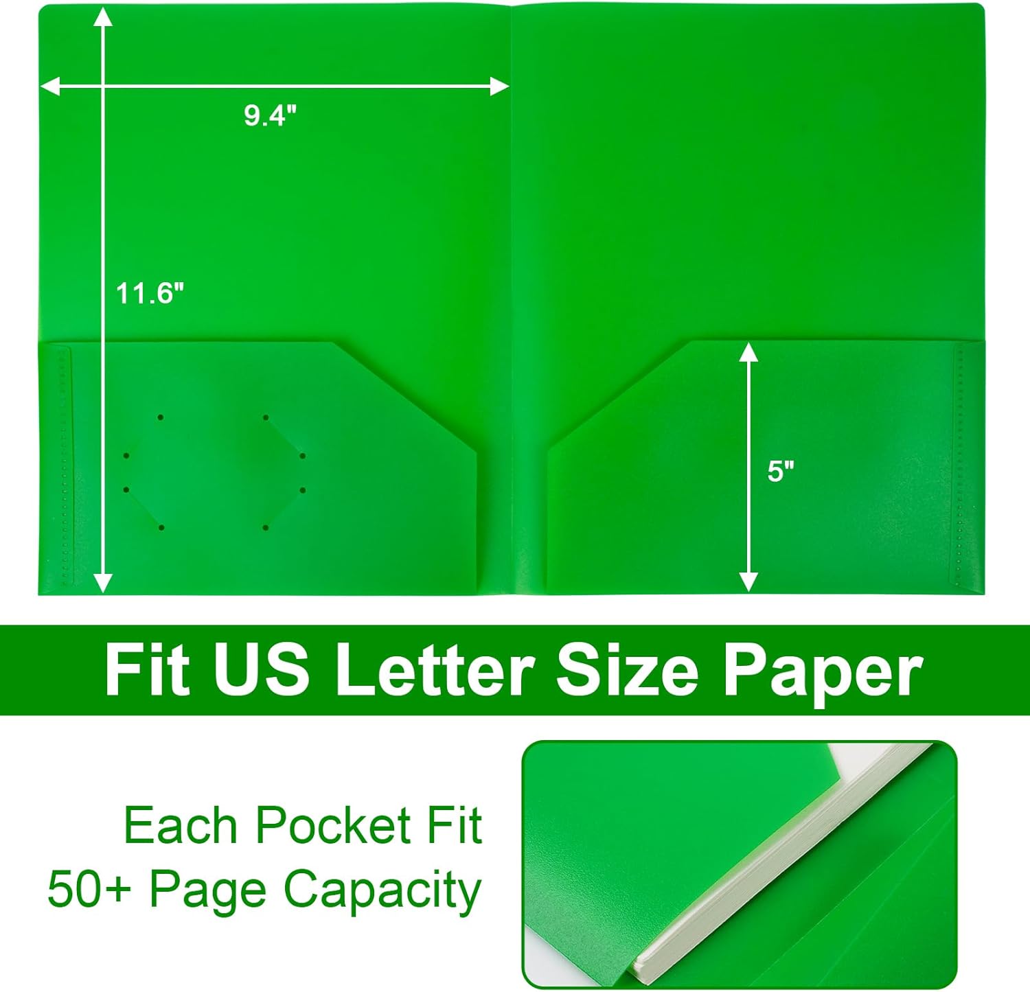 12-Pack Plastic Folders with Pockets,2-Pocket Poly Folders Holds 8-1/2" x 11" Paper for School/Office/Home, Green