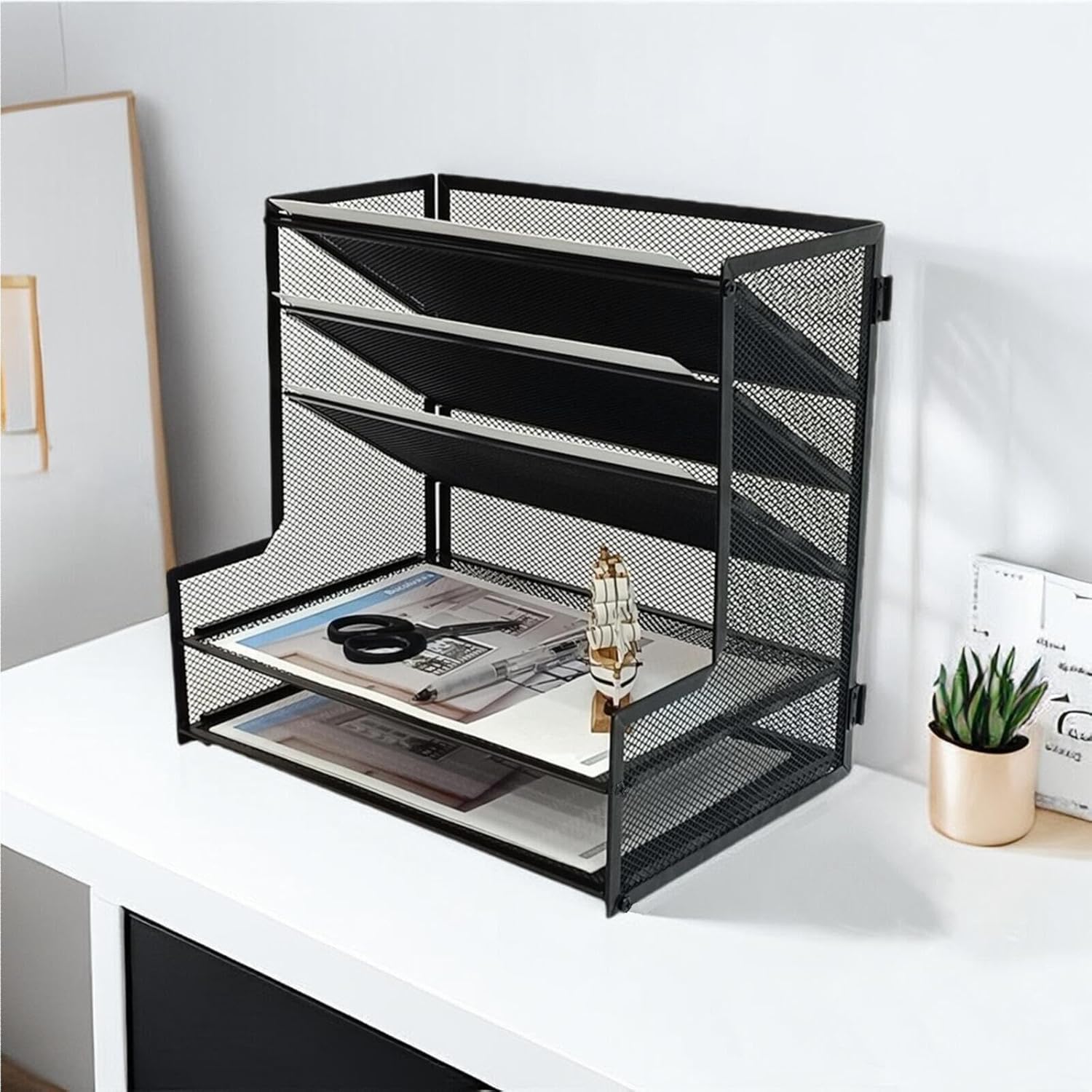 - The desktop file organizer is made of metal mesh, and the assembly is fast and simple, which can be completed by one person.