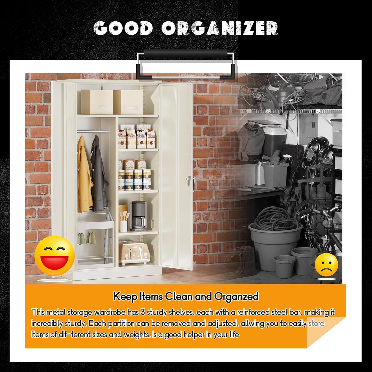 - 【Design to Prevent Tipping】Greenvelly 2 door metal cabinets 2024 have added a design to prevent tipping and can be more securely fixed to the wall. Prevent the cabinet from tipping forward due to heavy objects, protecting your and family's safety. bedroom armoires cabinets for storage with doors can also ensure the storage of more and heavier tools in areas such as classrooms, bedroom, tool rooms, and car repair shops.