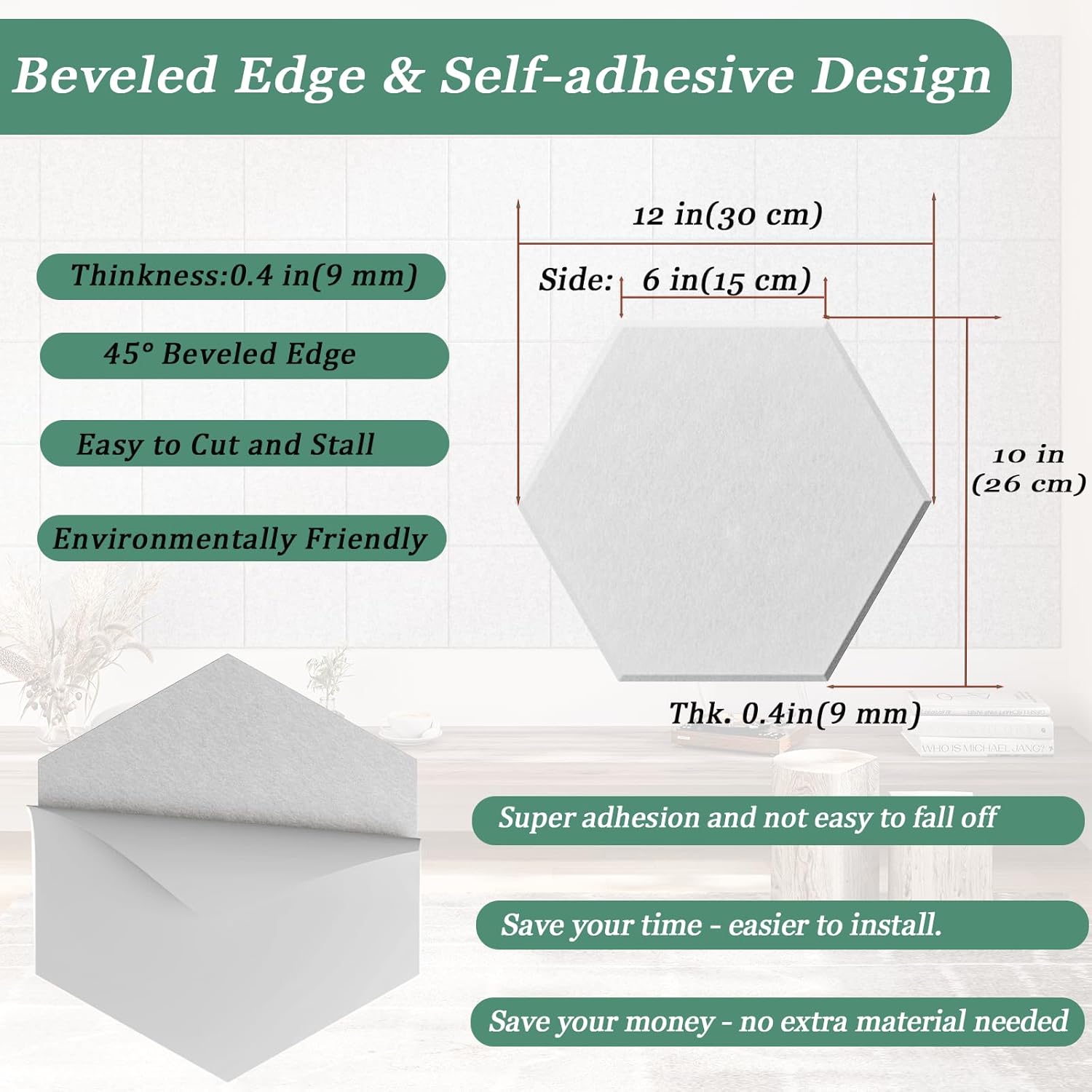 - 【Stylish and Creative】We offer hexagonal sound-absorbing panels in the size of 12"X10"X0.4", available in 18 colors. They are easy to cut into any shape, allowing you to unleash your creativity and design a vibrant and dynamic space.