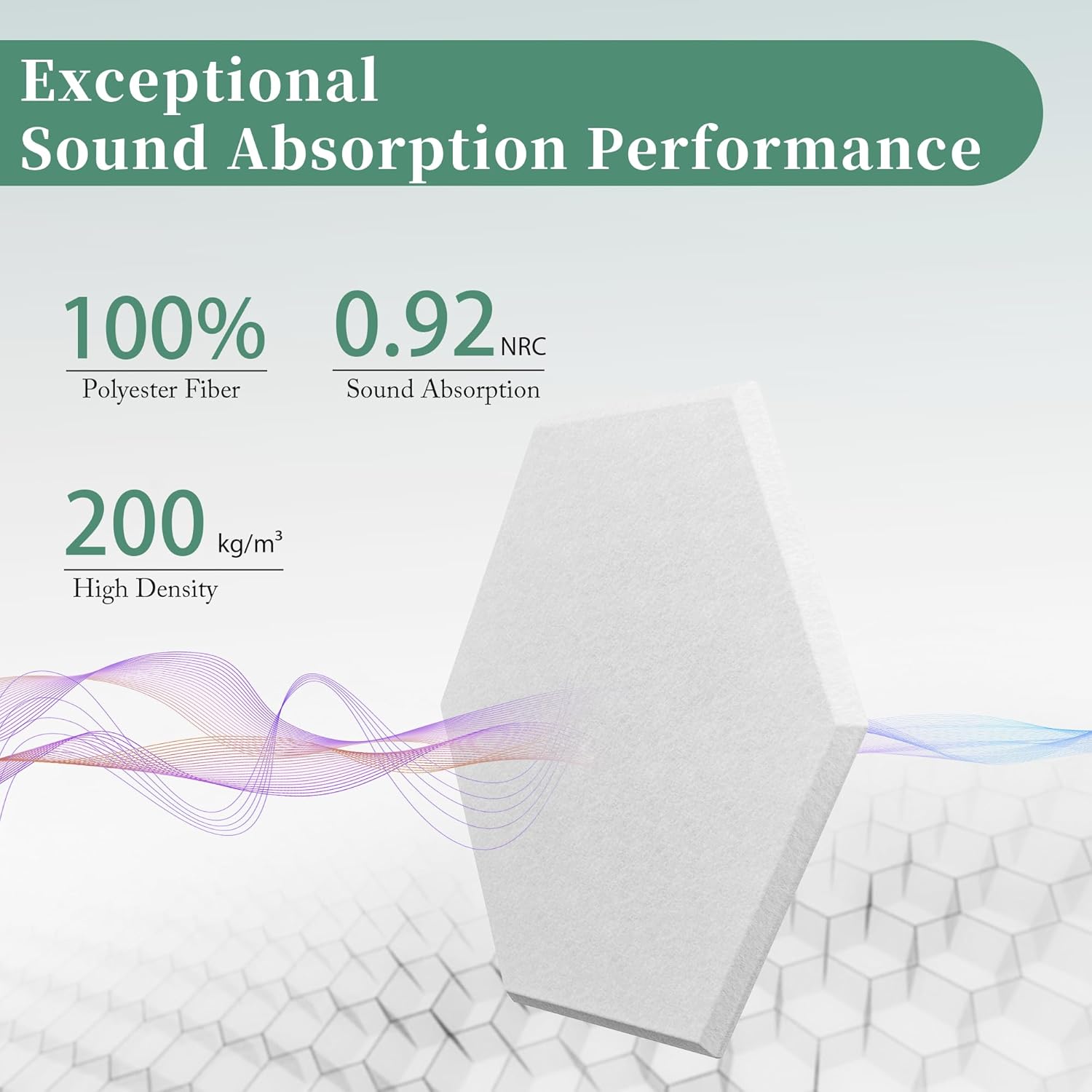 Hexagonal Acoustic Panels-12 Pack High-Density Sound Absorbing Panels 12"X10"X0.4" for Enhanced Noise Reduction, DIY Design, Idea for Studios, Offices, and Home Theaters(Snow White)