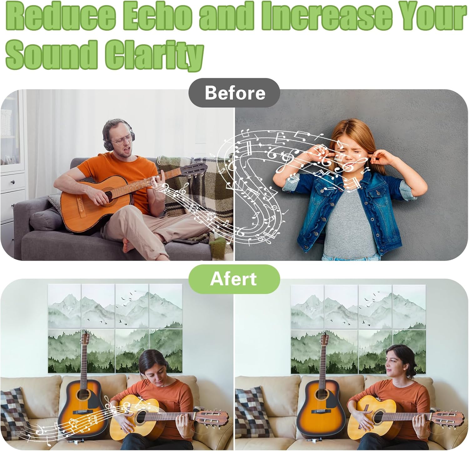 - UNIQUE DESIGN: The acoustic treatment are decorated with watercolor style natural landscape painting, with a misty forest in the foreground and a foggy mountain peak in the foreground, making them both functional and aesthetically pleasing. Suitable for music studios, home theaters, concert halls, conference rooms, offices etc.