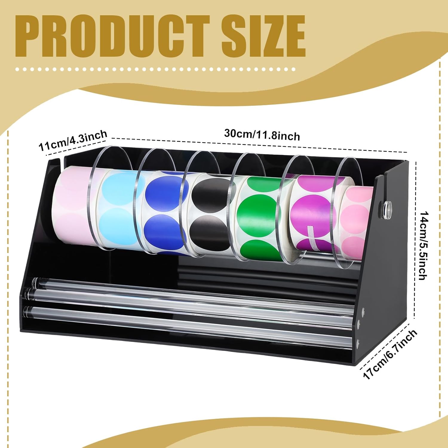 - Compact yet Capacious Design: despite its compact size of 11.8 x 6.7 x 5.5 inches, this sticker roll holder optimizes workspace efficiency without compromising on functionality, included are 6 disks for added storage