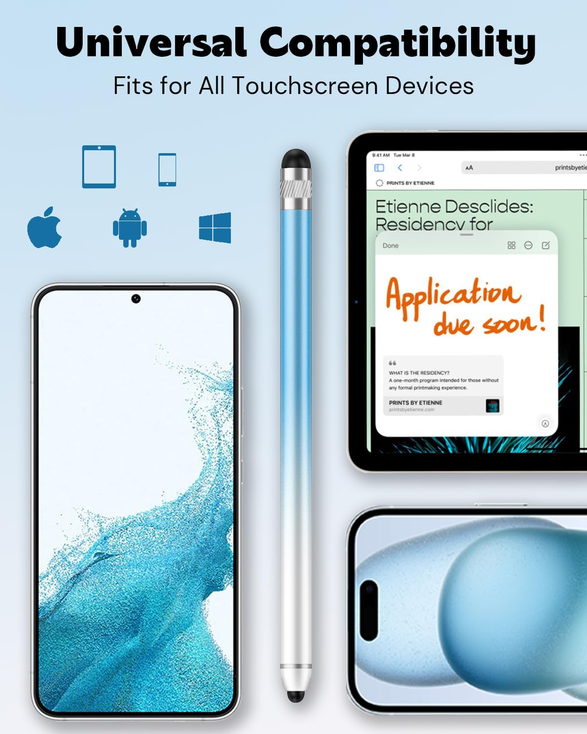 - 【REPLACEABLE TIPS AND STYLISH DESIGN】 Each pack includes 2 stylus pens and 4 additional replaceable silicone tips (2 large and 2 small), making it easy to swap out worn tips and extend the life of your touch screen pen. The pens feature a stylish gradient color design in pink and purple, adding a touch of elegance to your tech accessories.