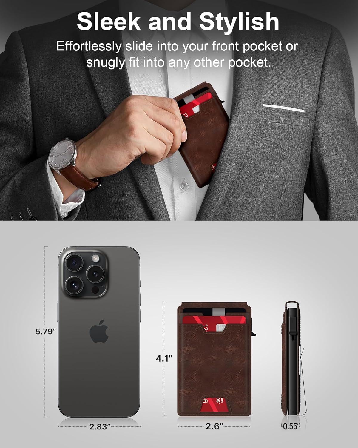 - 【Cutting-Edge Smart Features】Enjoy quick and effortless card access with our pop-up holder. A simple push-button mechanism reveals your go-to cards swiftly at your fingertips.